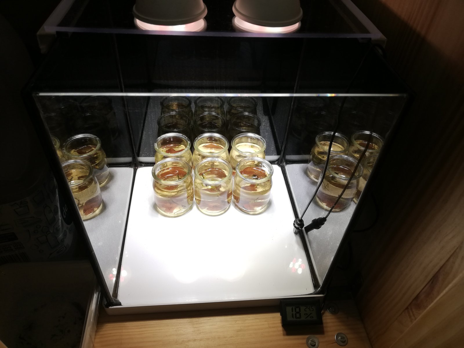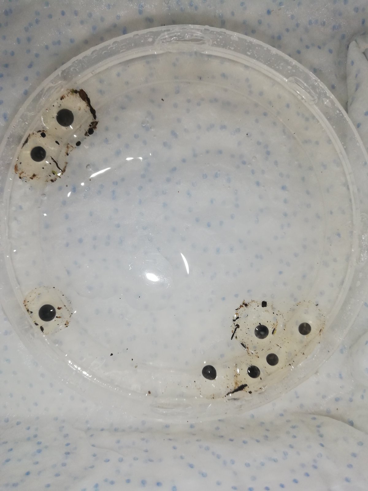 Os enseño la primera puesta de mi pareja de dendrobates tinctorius nominat, los adultos tienen casi dos años.