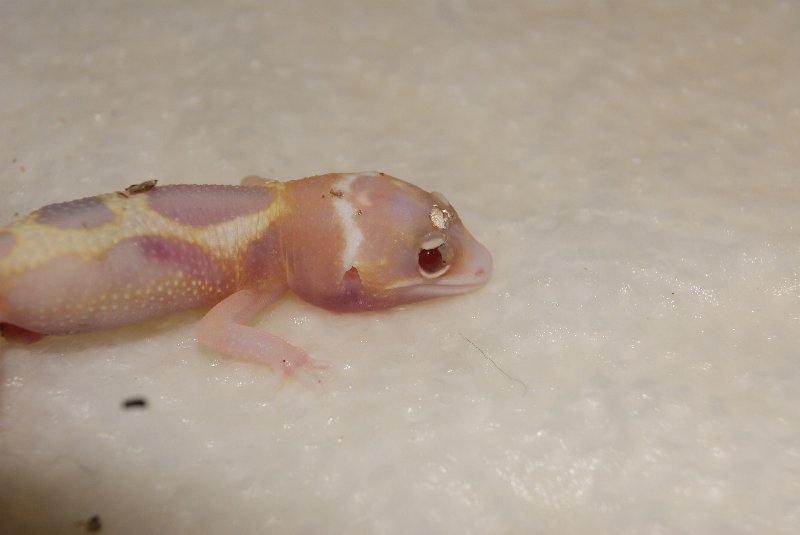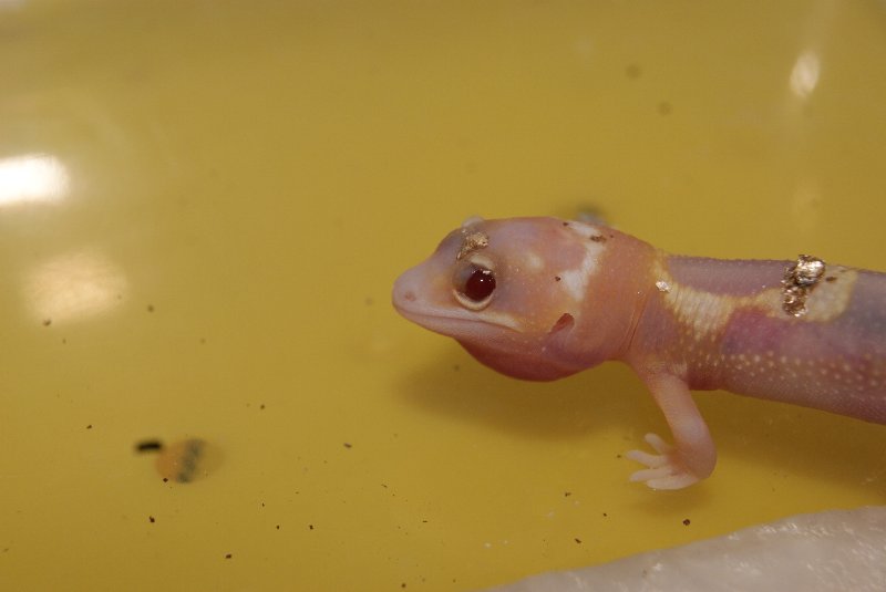 Pero estos geckitos están condenados a sufrir TODA su vida, no pueden cerrar los ojos, no pueden lamérselos como los geckos diurnos, siempre se quedan enanos, con todas las posibilidades de enfermar por cualquier motivo. La mayoría de los compañeros que les ha pasado comentan que por suerte, casi todos se mueren, después de estar agonizando una semana sin comer y sufriendo. Los que tienen algo de párpados a veces pueden sobrevivir, pero jamás llegan a desarrollarse correctamente, apenas miden un dedo. La mayoría coinciden en que hay que sacrificarlos para evitar que sufran una muerte lenta.