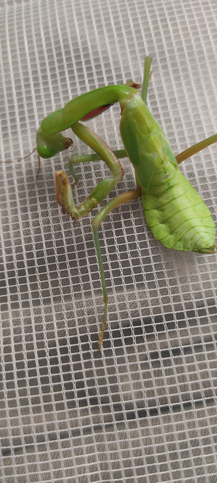 El problema es, que en las últimas mudas que han ,5 y 7, hembra macho respectivamente, han tenido complicaciones. En el caso de la hembra se le ha torcido un poco una pata, en vez de tenerla en la posición de rezo la tiene más abierta. Pero sigue pudiendo cazar y valerse por sí misma