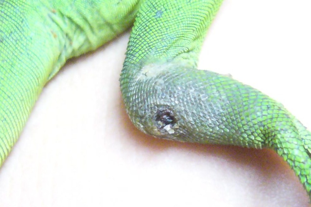 Hola Soy nuevo en este foro y la verdad, es la primera vez que me meto en un foro, necesito mucha ayuda y urgente .Compre mi iguana hace poco + de un mes, la trato como a una reina, pero es un poco escapadiza y en una de ellas salto y se dio un golpe muy fuerte en la pata trasera derecha, a los pocos dias se le inflamo y se le puso de colr gris (antes era verde porsupuesto) y no le di mucha importancia ya que seguia su rutina habitual y ayer por la noche me di cuenta de que el "pulgar gris" no estaba y se le ha hecho un "muñon" con forma de grano negro y parece que lo tiene tierno y humedo pero no se que es. Alguien me puede decir si es preocupante por que ella sigue con una vida normal y la misma vitalidad de siempre Gracias un saludo