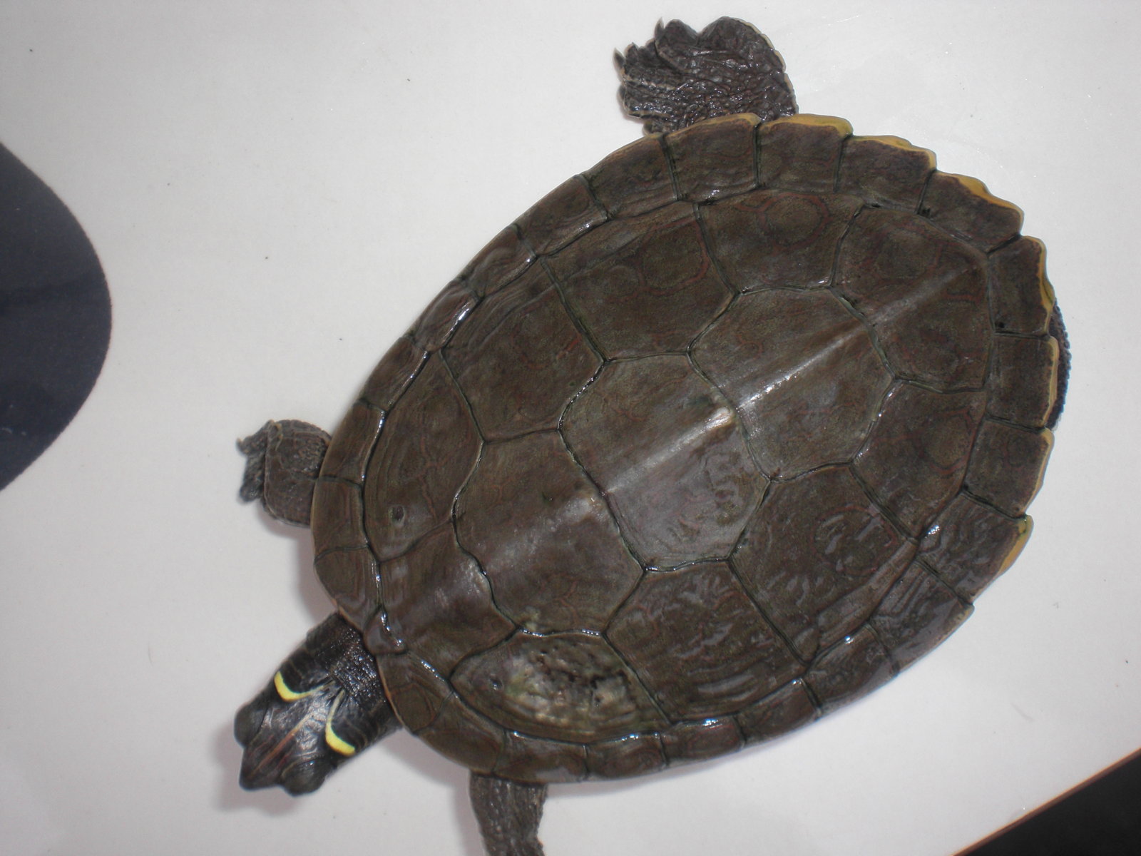 Su dueño me dijo que lo tiene desde hace por lo menos 3 años, durante todo este tiempo ha estado junto a otra tortuga mapa y esta última tiene el caparazón perfecto.
