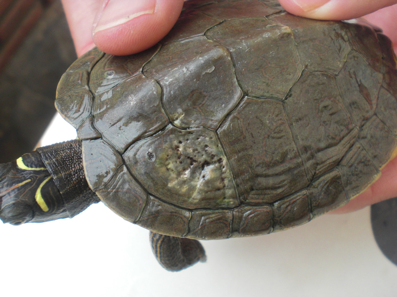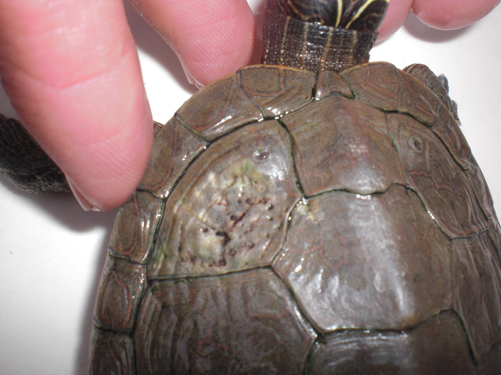Hace poco adopté una tortuga mapa, pero tiene como una especie de llaga en el caparazón, ¿Qué puede ser?