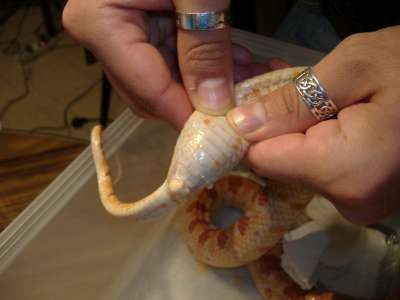 Mañana llevo a la serpiente al veterinario, para ver si se puede hacer algo con el desgarrito interno, y si hay que medicarla o algo.