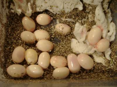Lo mejor es no ponerse en el peor caso que es la retencion de los huevos ya q en ese caso solo puede solucionarlo un veterinario especializado en reptiles.