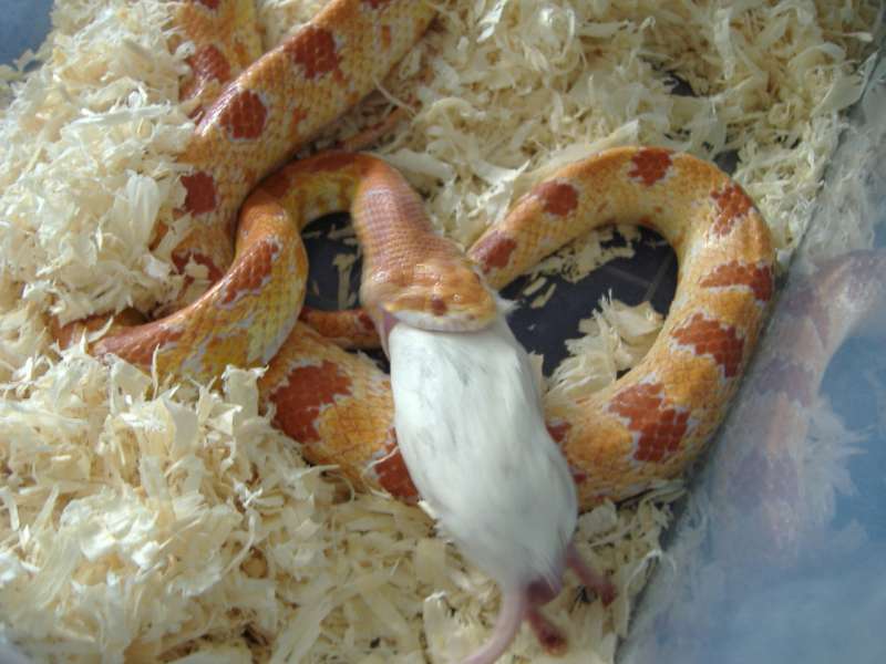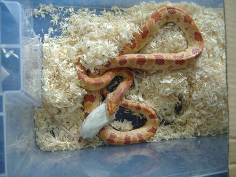 Supongo que si se repone y todo va bien, al final si no me mudo tendré que venderla seguramente a ella o al macho, puesto que no dispongo de espacio suficiente para mantener contínuamente a las serpientes adultas por separado.