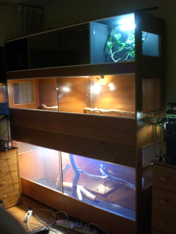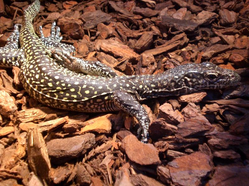 El varano tiene para muucho tiempo en ese terrario, cuando sea bien grande, ya lo modificaré, y se hace mas grande aun. Es un varanus doreanus, por si lo confundes con otro :D