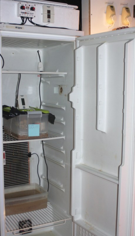 Esta es la incubadora que he utilizado, muy simple, una nevera vieja, una manta termica,un pequeño ventilador y un termostato habistat.