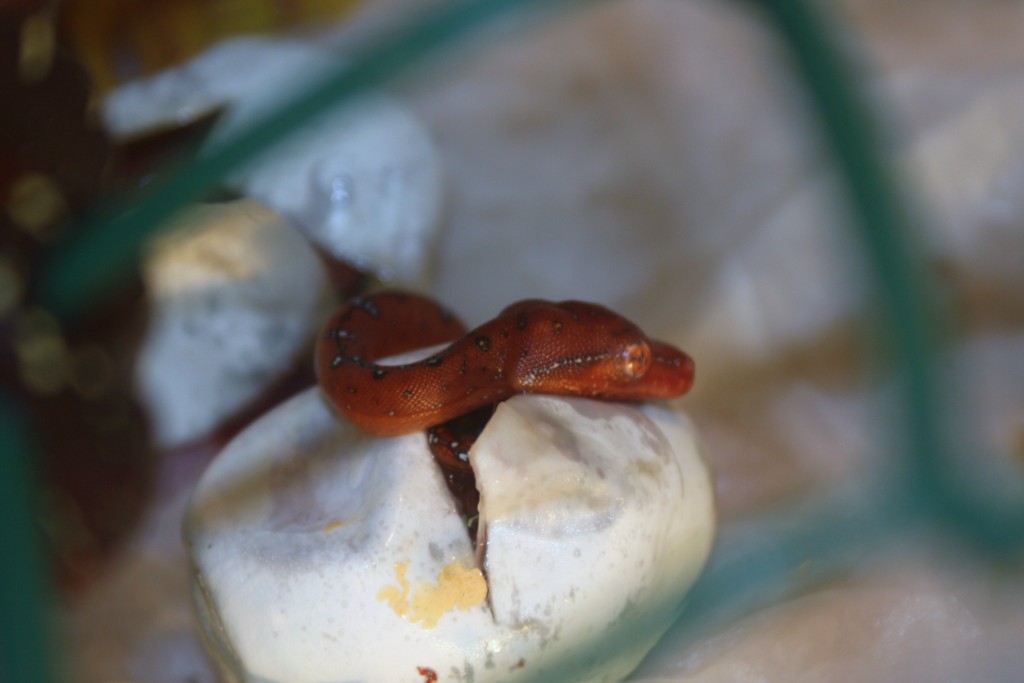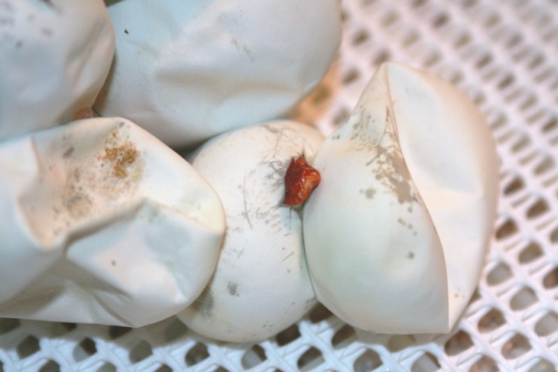 Y 50 días después de la puesta, y a una temperatura constante de 31,5ºC, comienzan a eclosionar los primeros huevos.