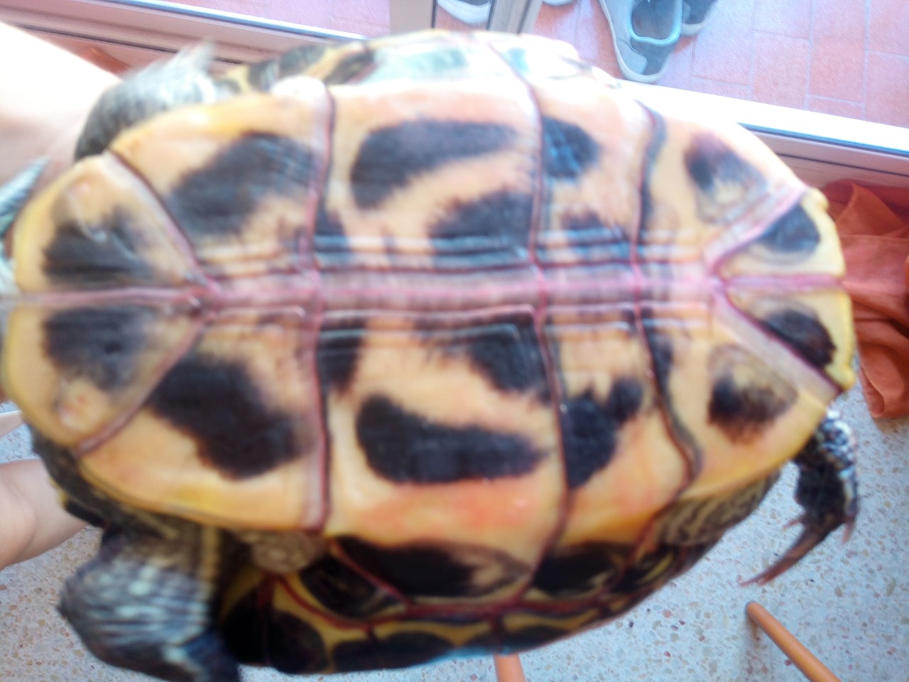 Desde hace unas semanas he empezado a darle un alimento seco en sticks de color rojo y más o menos desde entonces las estrías de su plastrón, sus uñitas y otras partes de su keratina están de color rojizo. He buscado en Internet y lo único similar que he visto es la enfermedad de la septicemia, pero mi tortuga no tiene la piel con manchas rojas, su piel está bien, solo tiene esta coloración en las rayitas que unen su caparazón por la parte de abajo y un poco en las uñas.