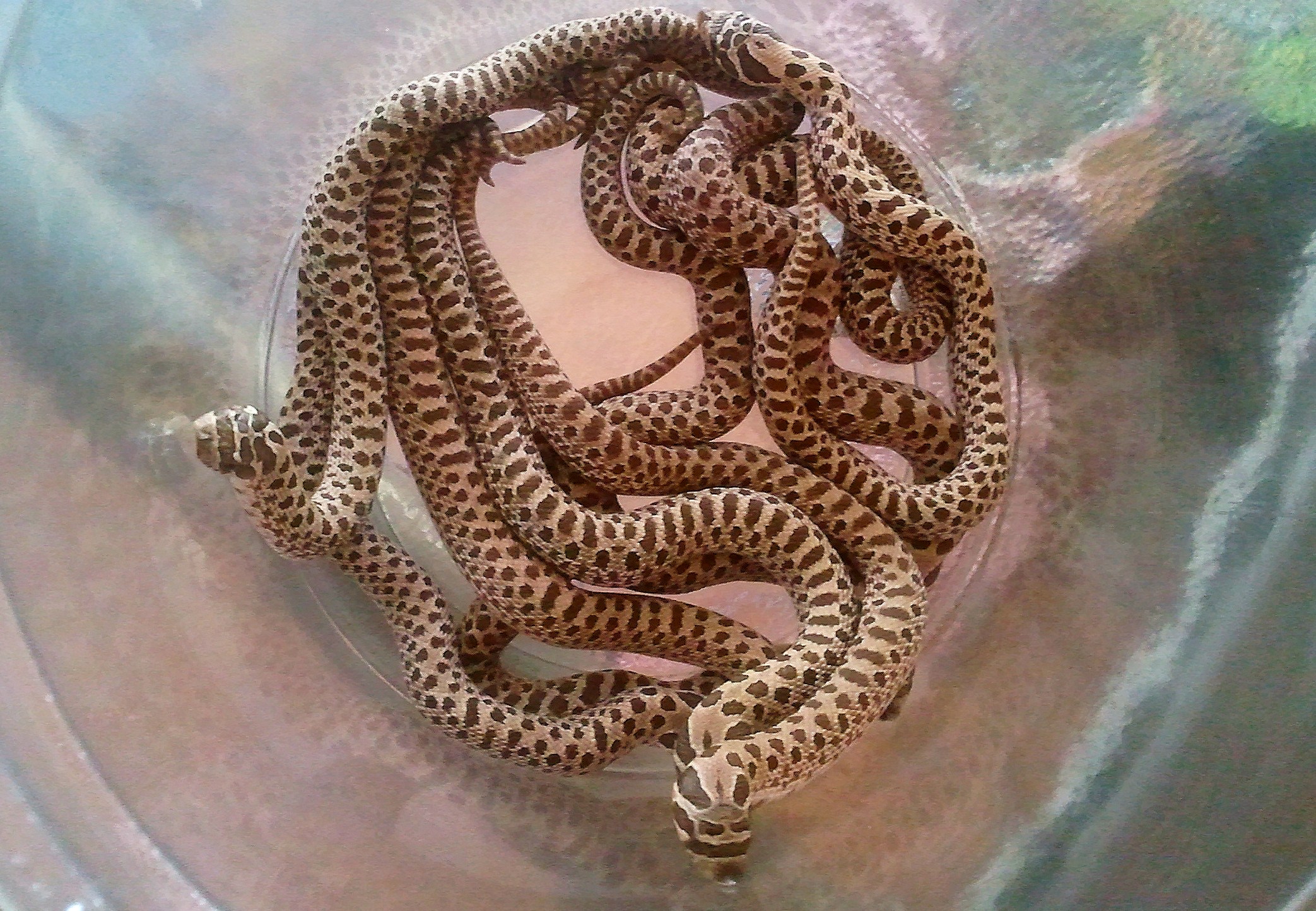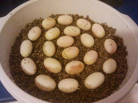 Hola a todos, como cada año mi hembra de heterodon ha echo su puesta, en esta ocasión han sido 21 huevos y 3 slug, de los 21 huevos hay 2 que parecen no estar fecundados.