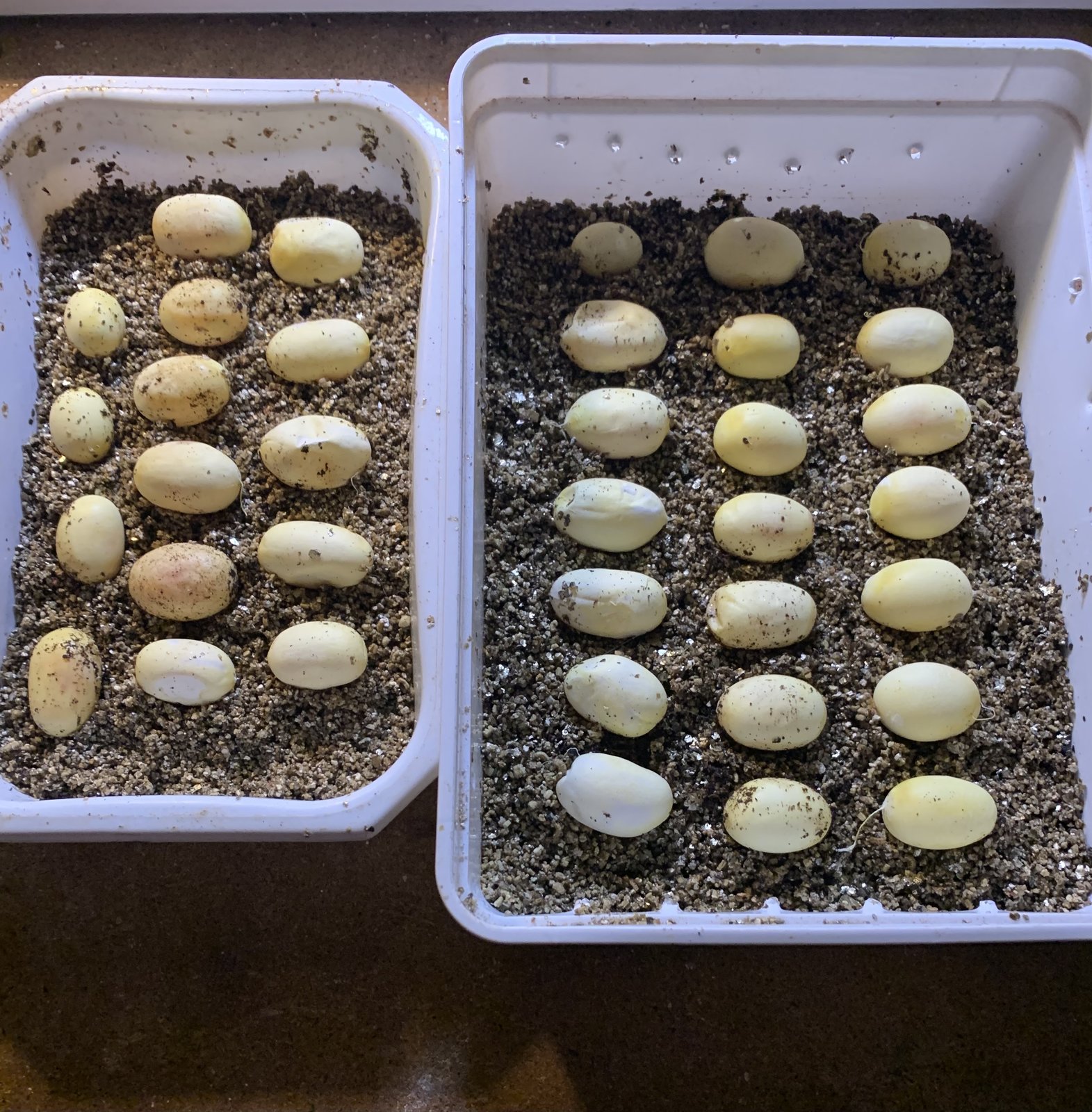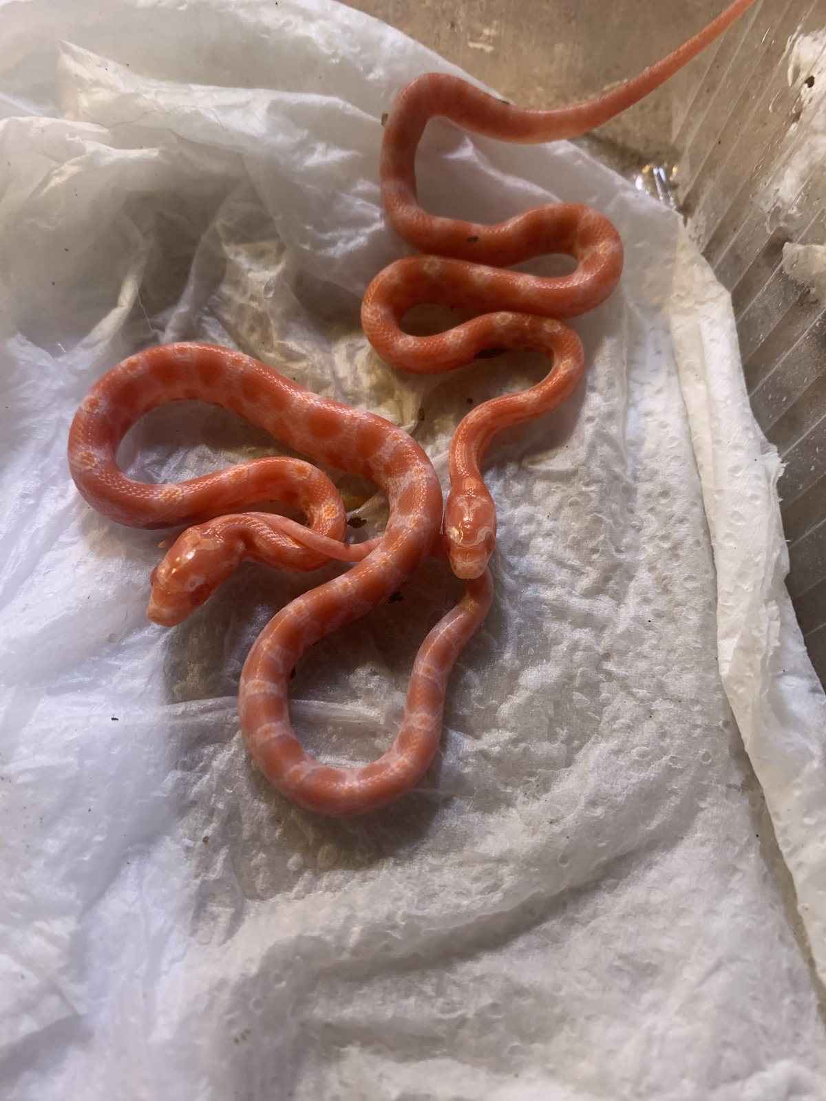 Hola, os presento a mi guttata del año 2007, me ha puesto 36 huevos..creo son muchisimos, estuvo todo el dia con la puesta, io los iba sacando para que no se chafaran, a ver si salen adelante. El macho es albino ella nominal. Saldrian todas het albino, nose si algo mas claritas que las normales. Os dejo foto del padre tambien.