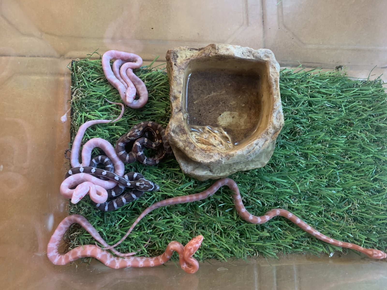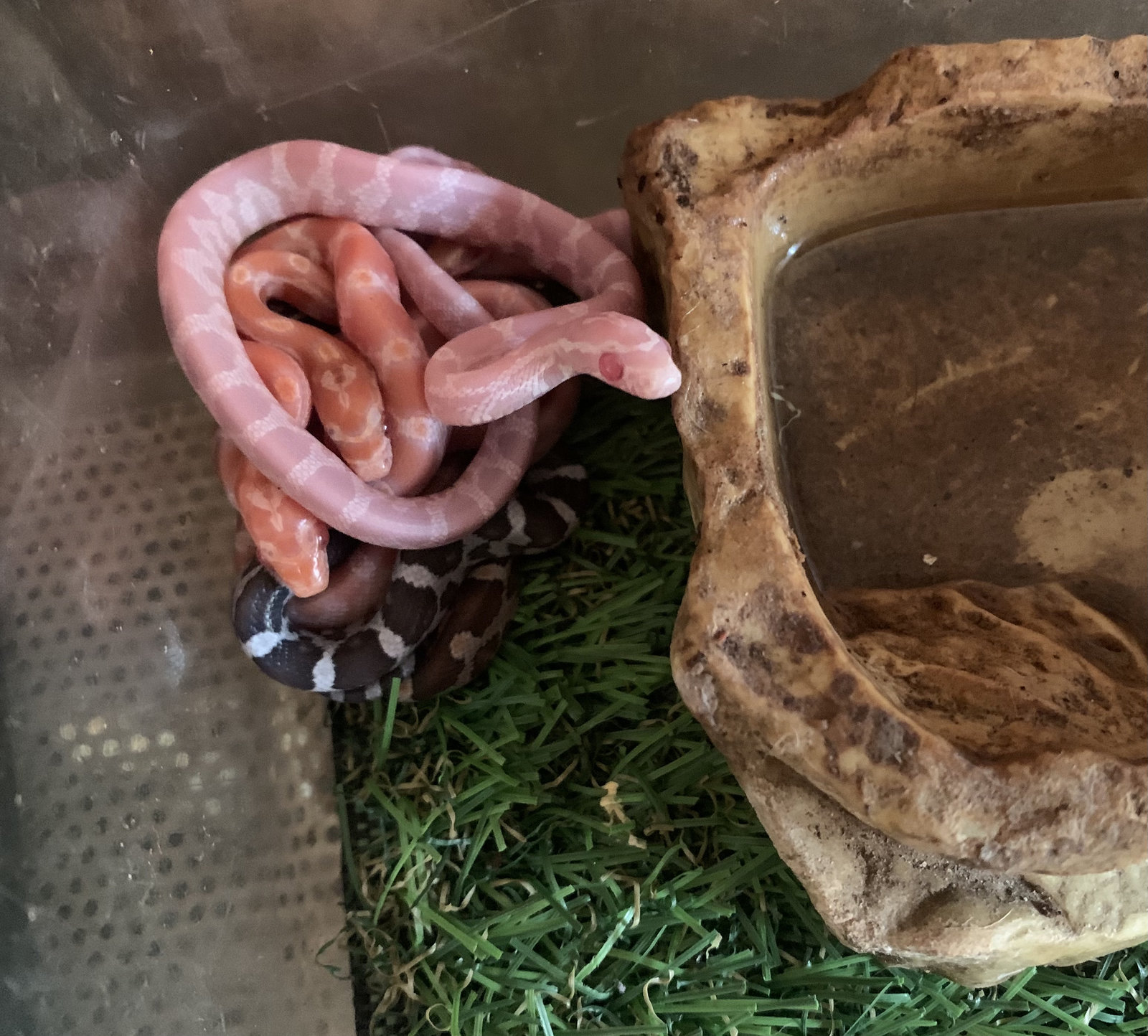 Hace dos dias de la puesta, de momento no quiere comer..se pasa el dia en un rincon medio en remojo.