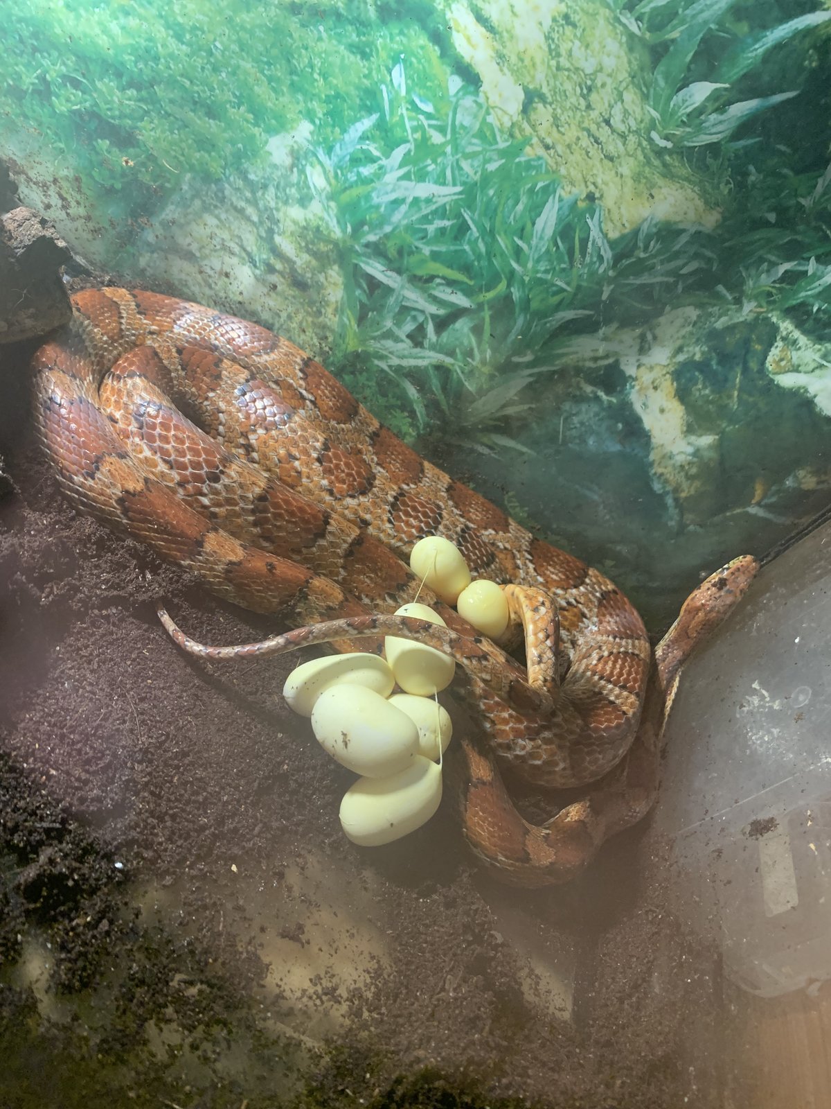 Ya han salido 8, quedan 7 huevos mas para eclosionar. ( 4 amel, 2 snow, 1 anery, 1 nominal) Cuanto deberian empezar a comer es mi primera puesta con exito. Todas tiran a morder . Las veo muy enanas para engullir un pinkie de raton