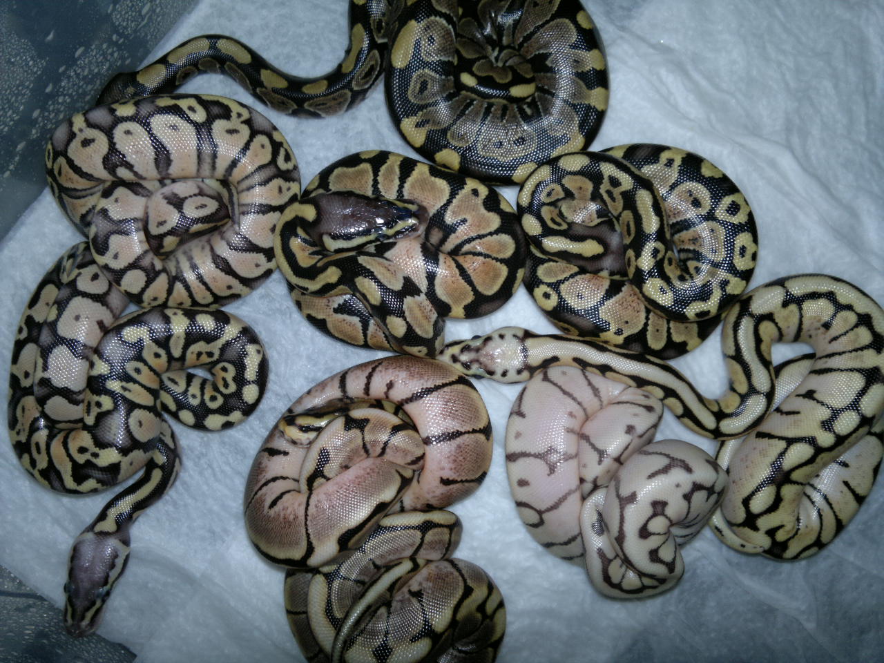 Butter, mojave, lesser son variantes de la misma genética y son compatibles entre ellas para sacar leucísticas de ojos azules... De hecho, con esta combinación es más facil sacarla que cruzando 2 mojaves... En este cruce pueden salir, normales, pasteles, butter, mojave, pastel mojave, butter pastel, leucísticas de ojos azules, y leucísticas de ojos azules pastel. Por eso yo tenia mucha curiosidad por esta puesta desde el principio, aparte de ser un pedazo de puesta de 9 huevos.