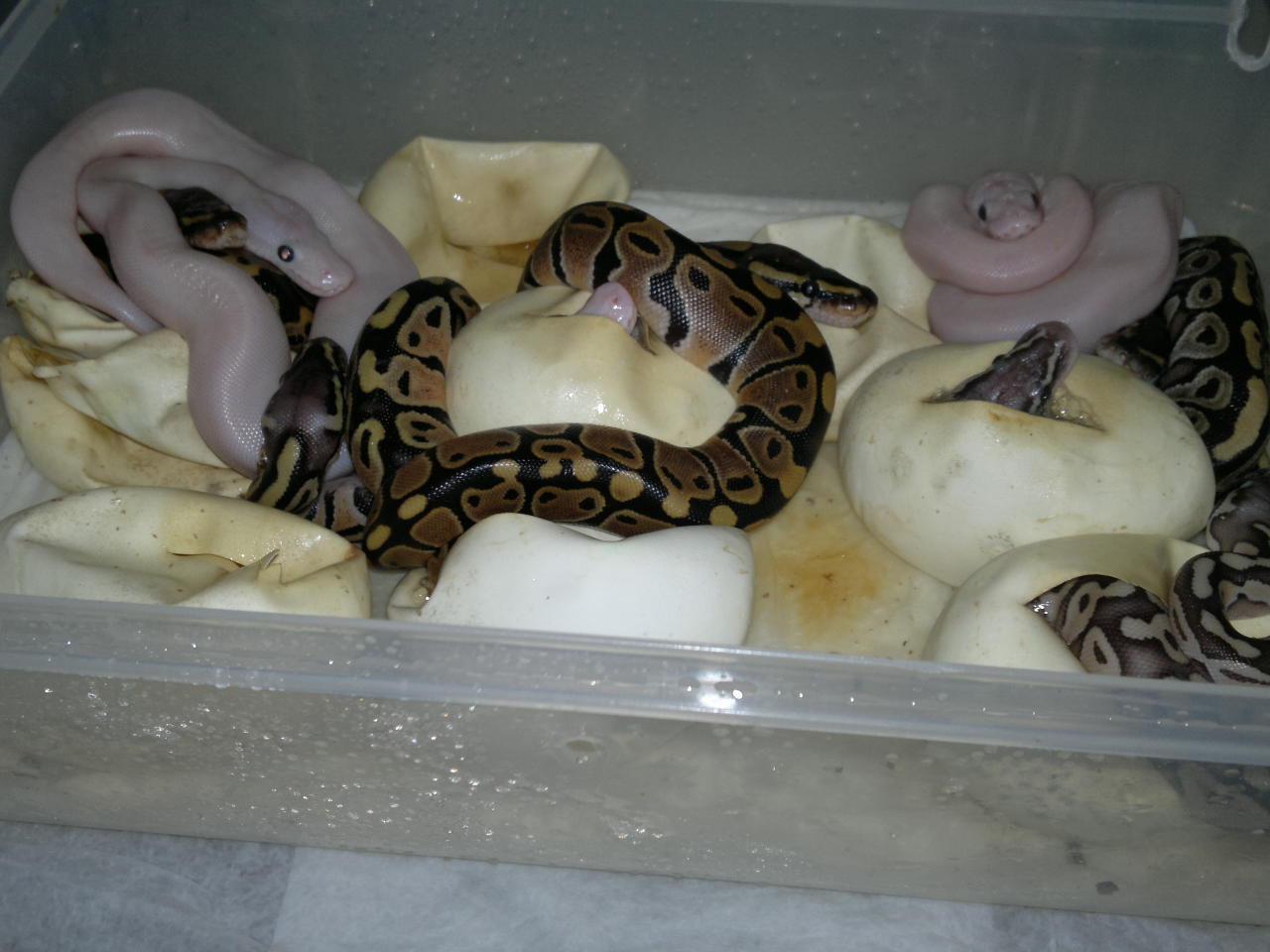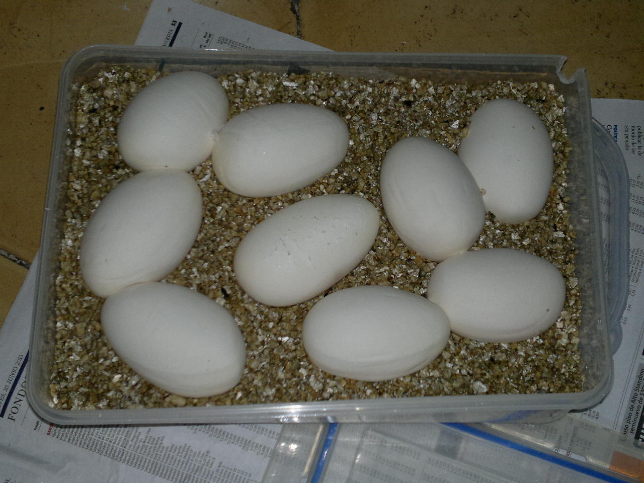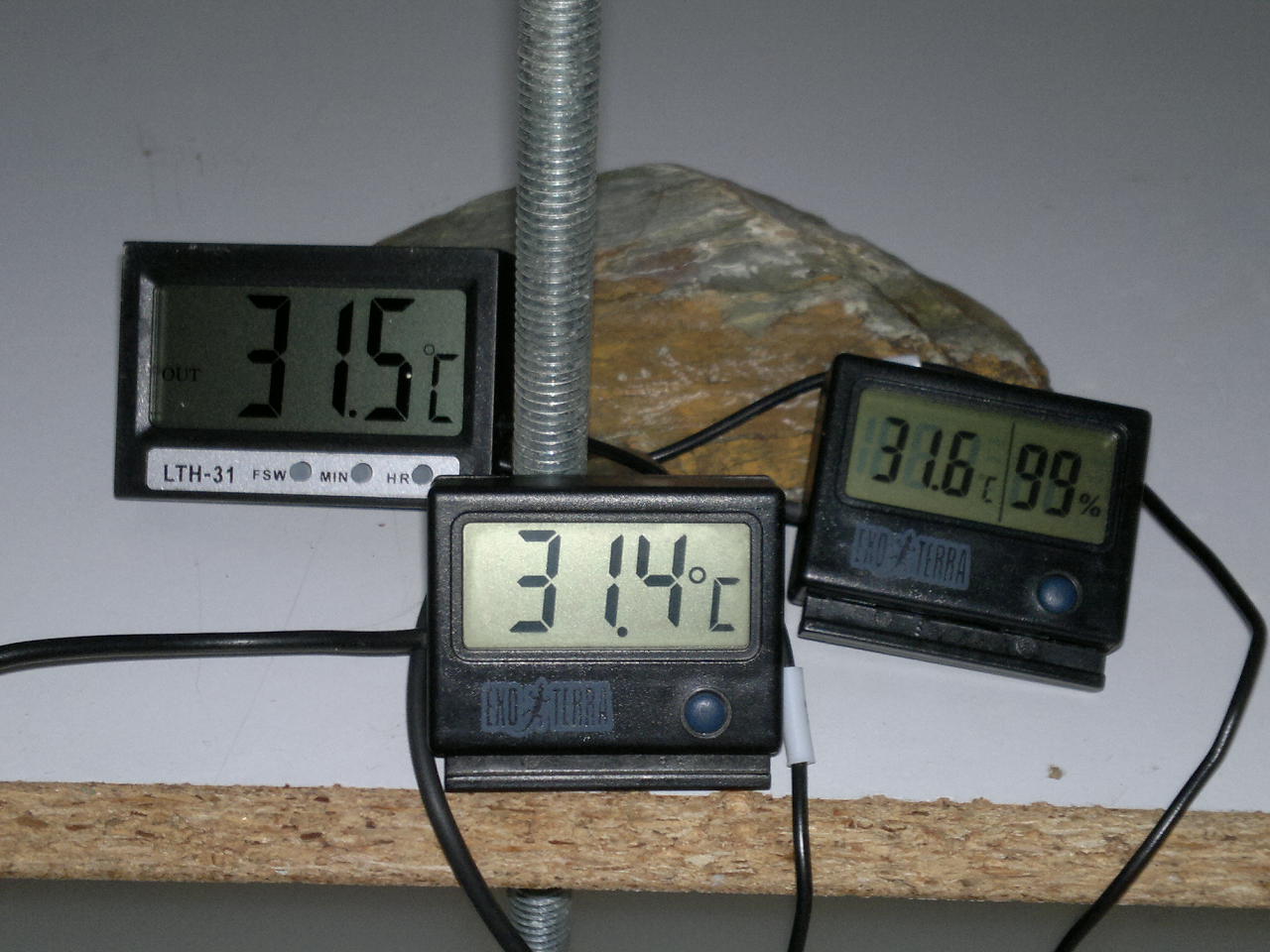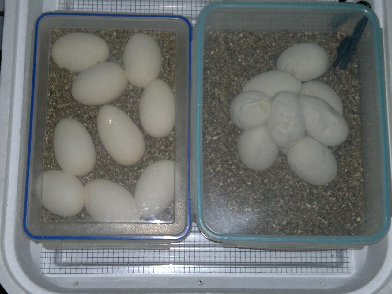 No creo que tengan problemas por la temperatura , la tengo muy controlada y dentro de la incubadora es uniforme (la diferencia que se ve en la foto es error de los termometros , fuera de la incubadora tienen la misma diferencia) , mas bien tengo miedo por la ventilacion , pero en la naturaleza estan pegados y no les pasa nada , asi que no creo que les sea muy malo .