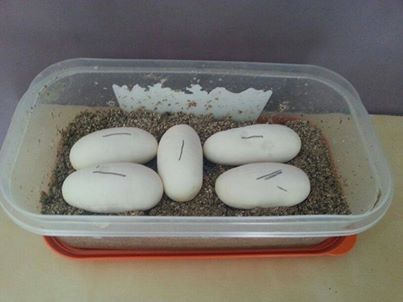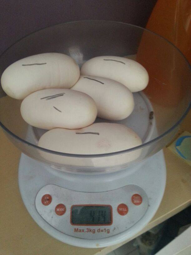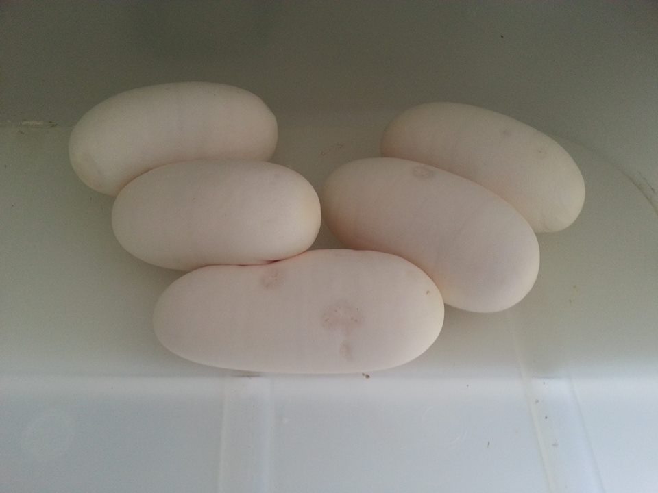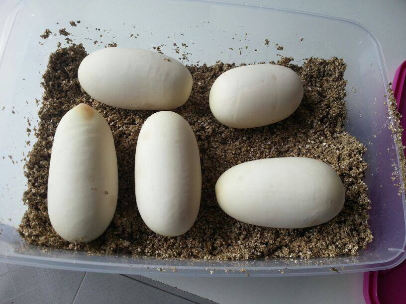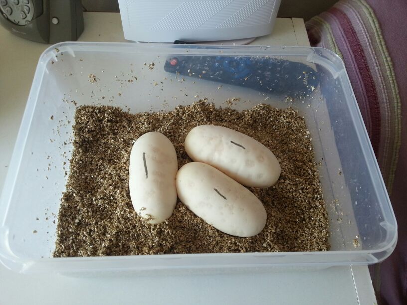 la primera puesta son 3 huevos de pastel x spinerblast (an pesado unos 270 gramos los 3)