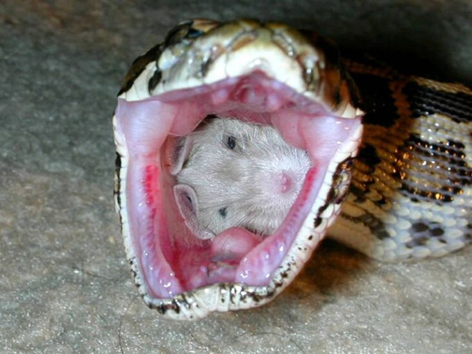 Bajo mi punto de vista es el momento que "menos debe gustar" a un reptilero. Y lo entrecomillo porque, desde luego, asombra el sistema de alimentarse que tienen las serpientes.