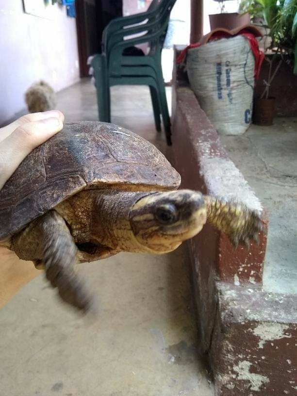 Mi sobrina encontró esta tortuga y la trajo a casa, la duda que tenemos es que clase de tortuga es y que cuidados necesita. No sabemos su raza, tampoco si es de tierra o agua.