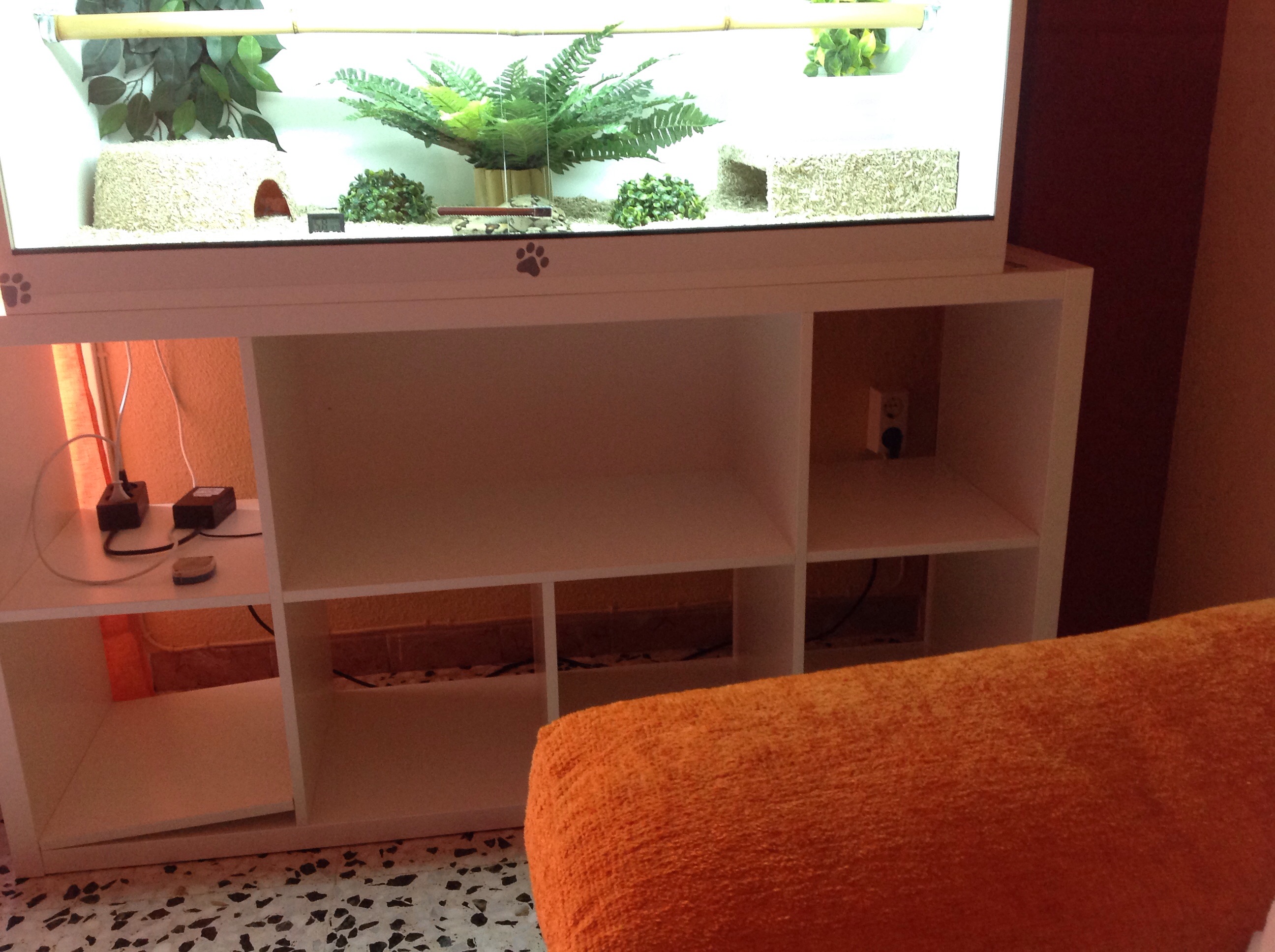 Buenas pues tras una larga charla con la mujer hoy al final conseguí que me deje meter otro terrario mas en el mismo mueble que tengo la boa, como se puede ver quite una división consiguiendo un espacio de 68,5 x 38,5 x 33,5 (largo x ancho x alto) estas medidas son limpias de terrario ya que cierro por detrás con madera y por delante pongo las guías directamente con 2 zócalos, como veis la intención es hacer el terrario sobre el propio mueble, la única duda que tengo es que animal puedo meter que viva en ese espacio siempre, ya que aumentarlo es imposible, me gustaría una regius pero de adulta dudo que este bien en ese espacio... Porque un macho? Si no una lampro? Solo hay dos condiciones Y sobre todo que no tengan el más mínimo veneno y sea ofidio, descarto por completo los geckos etc... Dejo una foto del espacio con el terrario encima de la boa ( terrario que moví de nuevo del cuarto al salón )