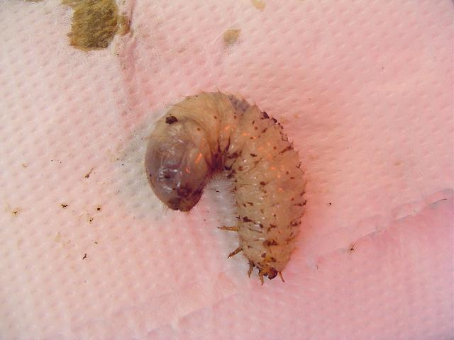 Pues es la larva de un escarabajo de la Familia Scarabeidae, Subfamilia Cetoniidae, más concretamente, y espero no equivocarme (que me corrijan si lo hago) de la especie Melolontha melolontha o "Escarabajo Sanjuanero"