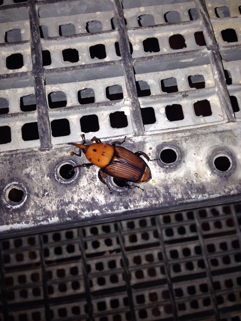 Cierto es un picudo rojo, y efectivamente es invasor y genera plaga, asi que, aunque suene cruel, haz que ese pequeñajo pase por el corredor de la muerte (daselo de alimento a algun bichejo que tengas, o a algun bichejo salvaje). Y como bien dice Perry, si hay palmeras cerca... tienen un problema, las palmeras claro