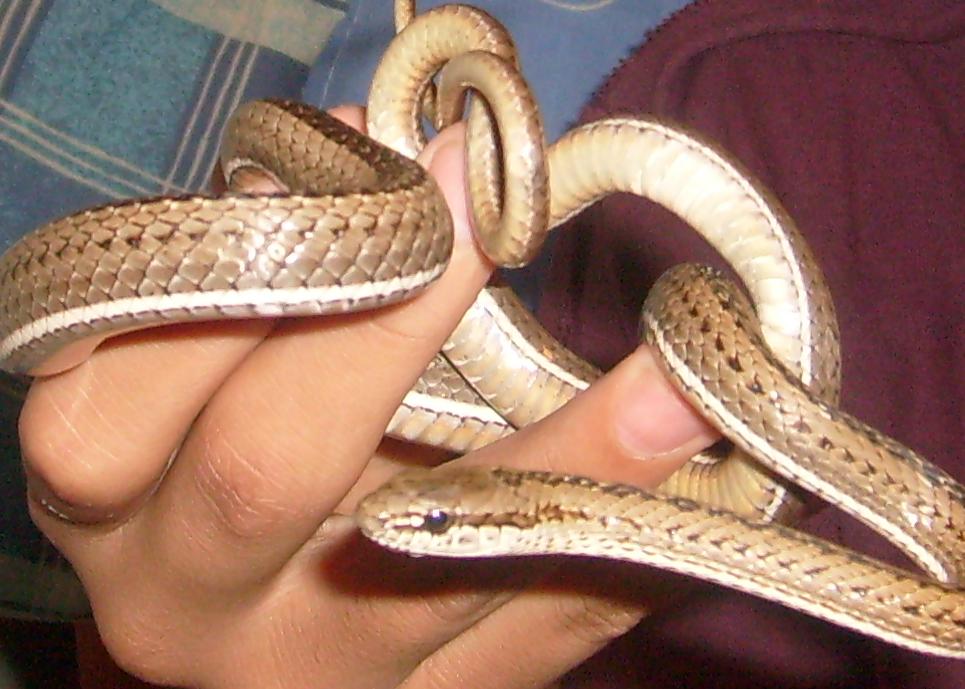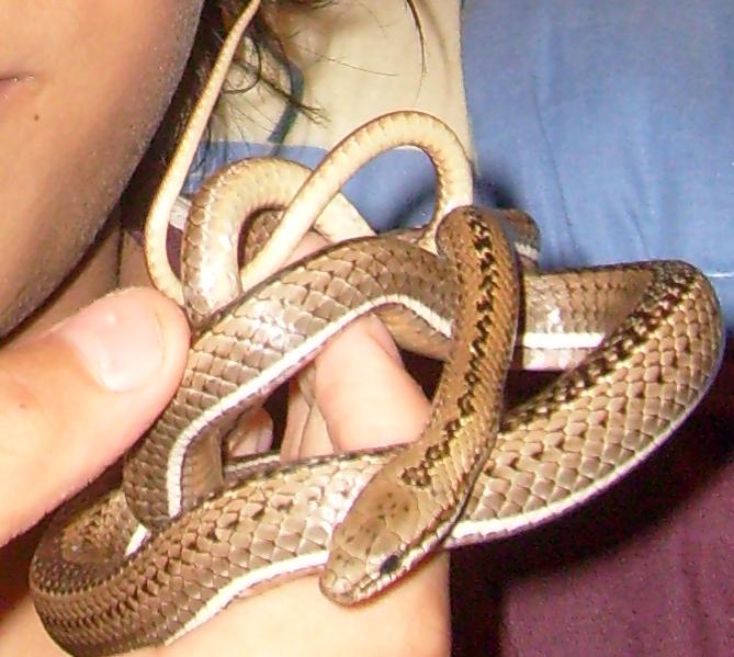 Bueno aqui les dejo una foto que me ha pasado un compañero del foro, no recuerdo su nick es de Argentina y en una clinica veterinaria le dieron este ejemplar, yo sinceramente no se cual puede ser, fuera aqui de españa pensaria en alguna autoctona como la scalaris o algo, esta claro que es un colubrido y nose si algun tipo de elaphe, pero entre esas manchas y la franja blanca de abajo diciendo que es baby de unos 50ctm no tengo ni idea de que puede ser.