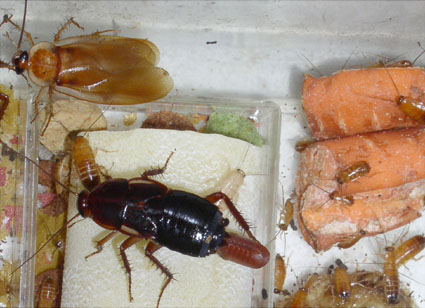 una cucaracha, de tamaño mediano-pequeño, muy resistentes y prolificas, tanto que hay que tener cuidado con las fugas ya que sobreviven y se reproducen sin problemas en cualquier ambiente. Segun mi experiencia son aceptadas por la mayoria de los animales, ademas no son caras, es lo que mas uso