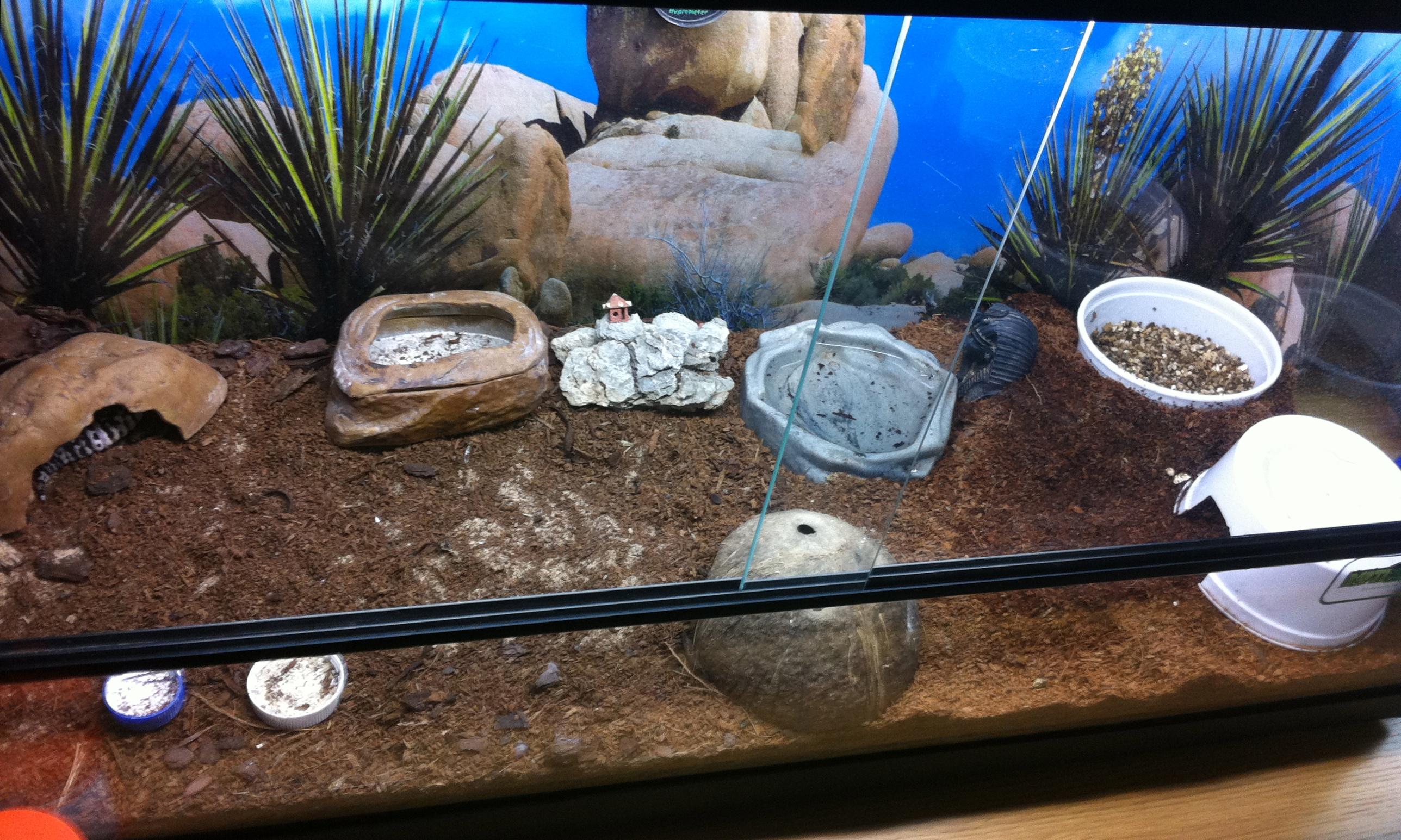 este es el terrario y lo que se ve al fondo a la derecha es vermiculit y donde encontre el huevo fue e la zona de la izq. zona caliente.