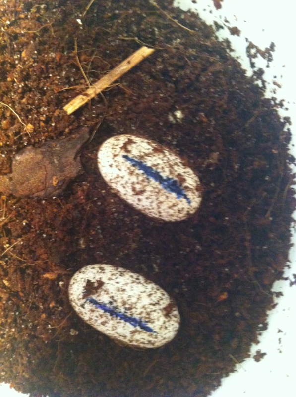 Y los huevos dentro asomandose por encima de la vermeculita.