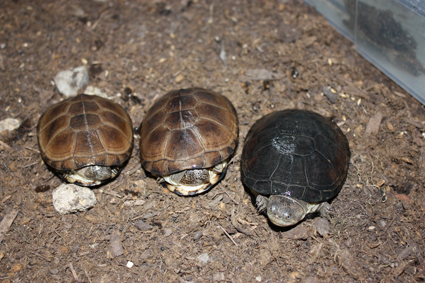 Aquí tenéis a la izquierda una Terrapene ornata ornata, y a la derecha un híbrido de los que hablamos: