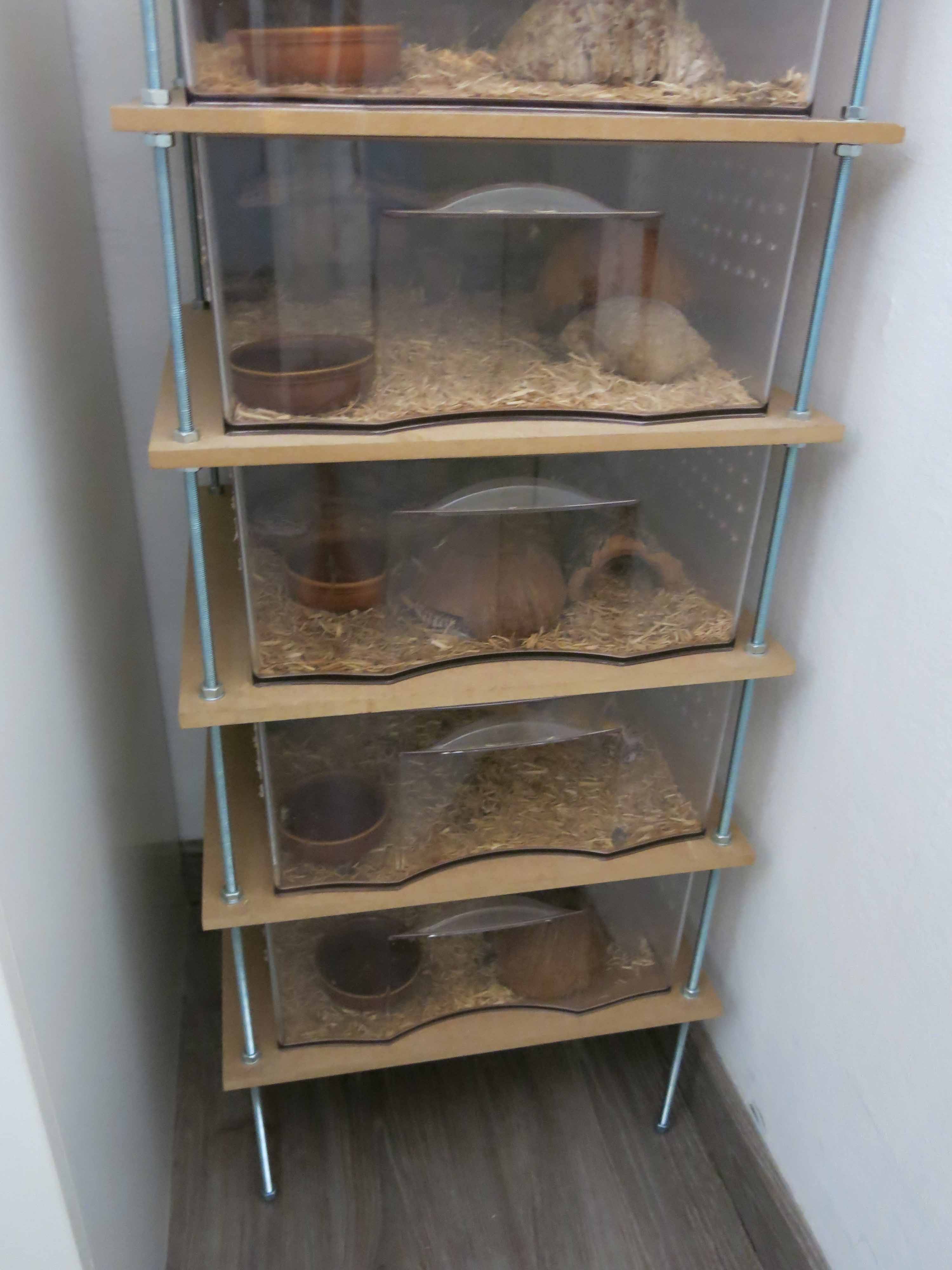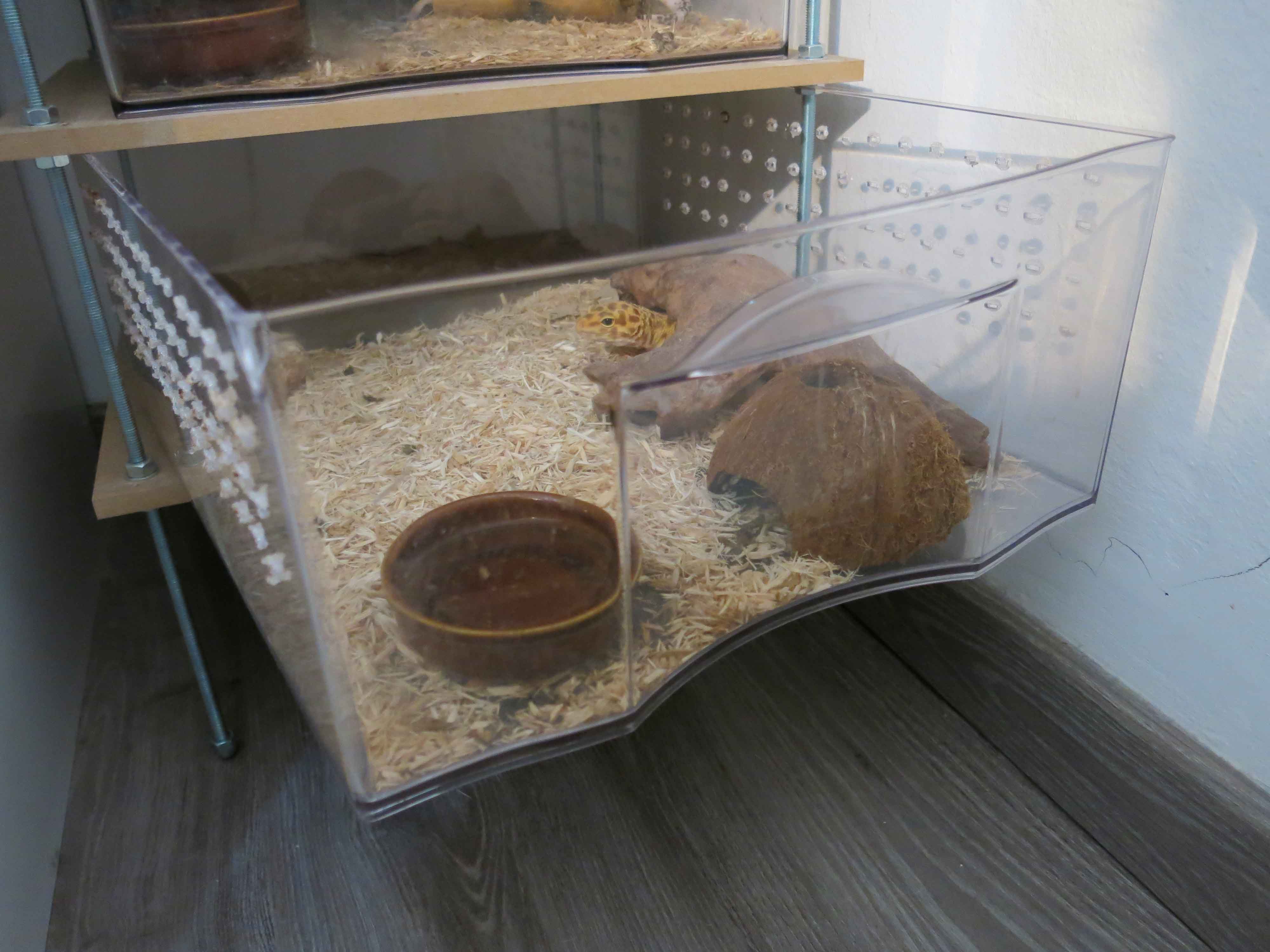 Hace ya algún tiempo construí este rack para eublepharis macularius. Ahora quiero ampliarlo para mantener nuevas adquisiciones pero me estoy volviendo loco buscando los mismos cajones transparentes, que en su día veía con bastante frecuencia (hace unos 3 años)