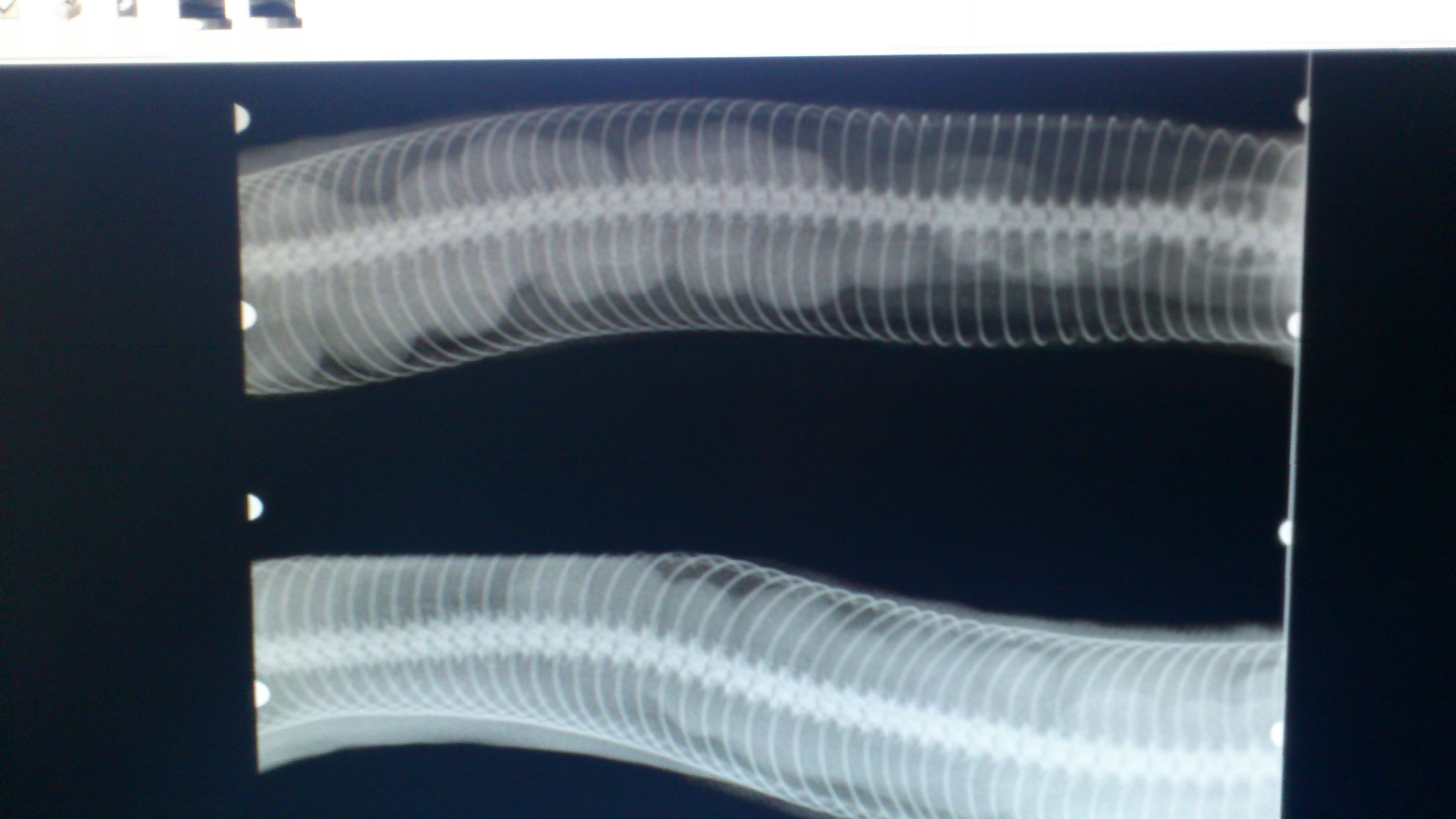 Hola buenas abro este post para ver que opinais de esta radiografia,yo creo que si lo esta pero nunca antes habia visto por eso la duda...y si lo esta de cuanto le quedara mas o menos?