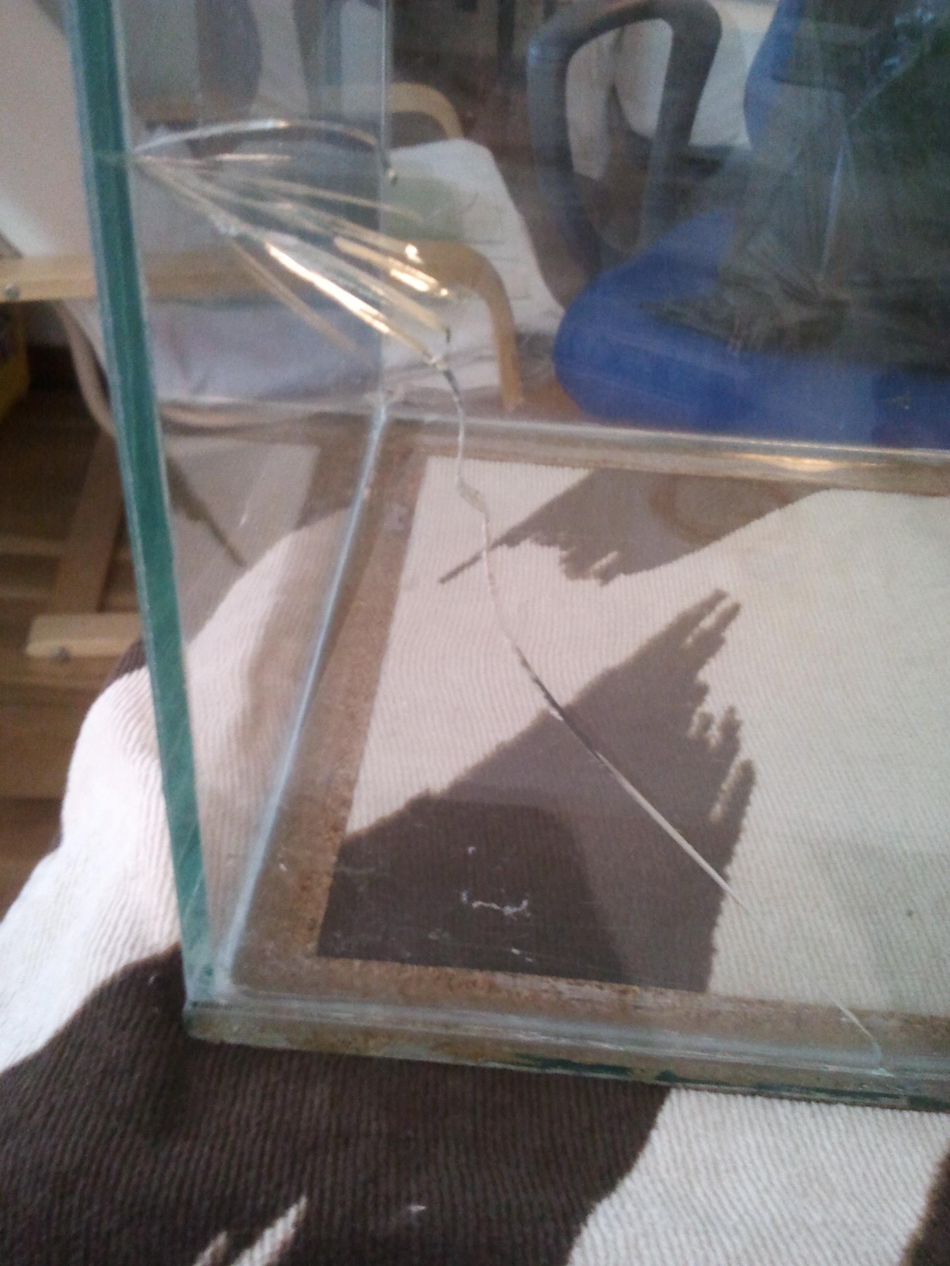 Me han regalado un acuario en desuso que llevaba años en un trastero, cuando consegui quitarle toda la roña que tenia y consegui ver el cristal me di cuenta de que tiene una raja, la raja esta cerrada, me refiero a que no puede hacerse mas grade, pero de la esquina lateral, salen 3 o 4 pequeñas rajas. Lo he probado y pierde agua (1 gotita cada 10-15 minutos, pero pierde)