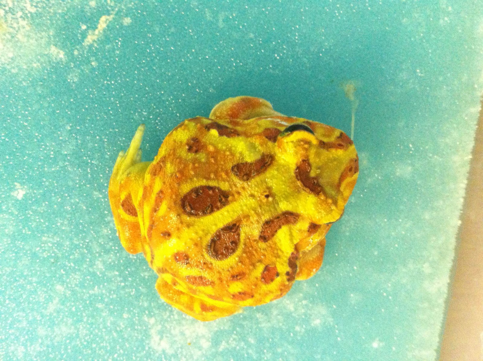 Tengo una rana pacman que me la vendieron como mutación Apricot, pero mirando fotos e información por la red, he visto que las apricot son albinas y mas con tono naranja.