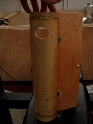 He usado caña de bambu,chapon,bisagras,cerradura y barniz.