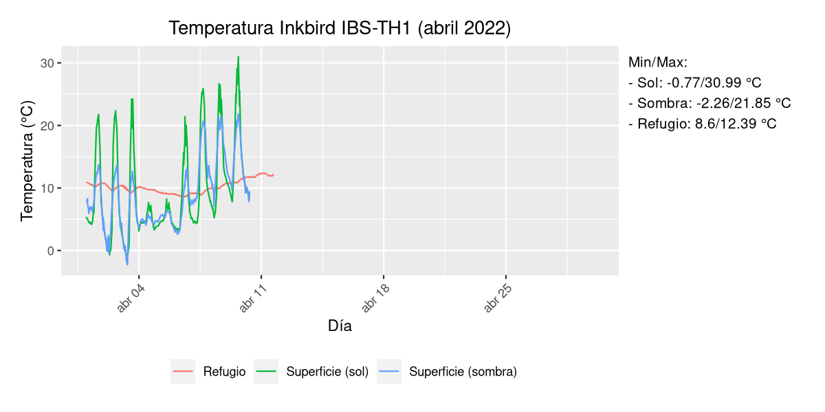 Como posible futuro proyecto contemplaba la posibilidad de hacer algunas instalaciones exteriores, cada vez menos claro por el rumbo que está tomando la legislación. Aunque en el pasado ya monté algunas (https://www.faunaexotica.net/threads/instalacion-exterior-para-urodelos.77268/) fue un poco a ciegas sin saber realmente qué temperaturas se alcanzaban en el refugio subterráneo.