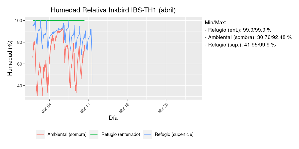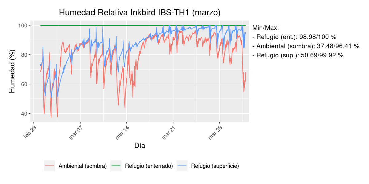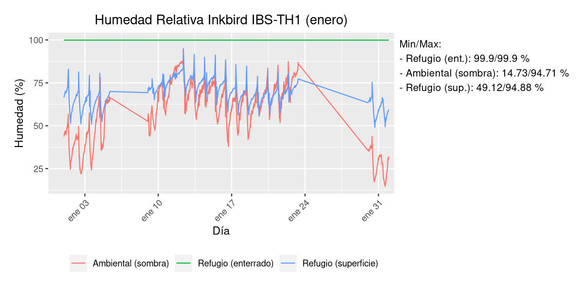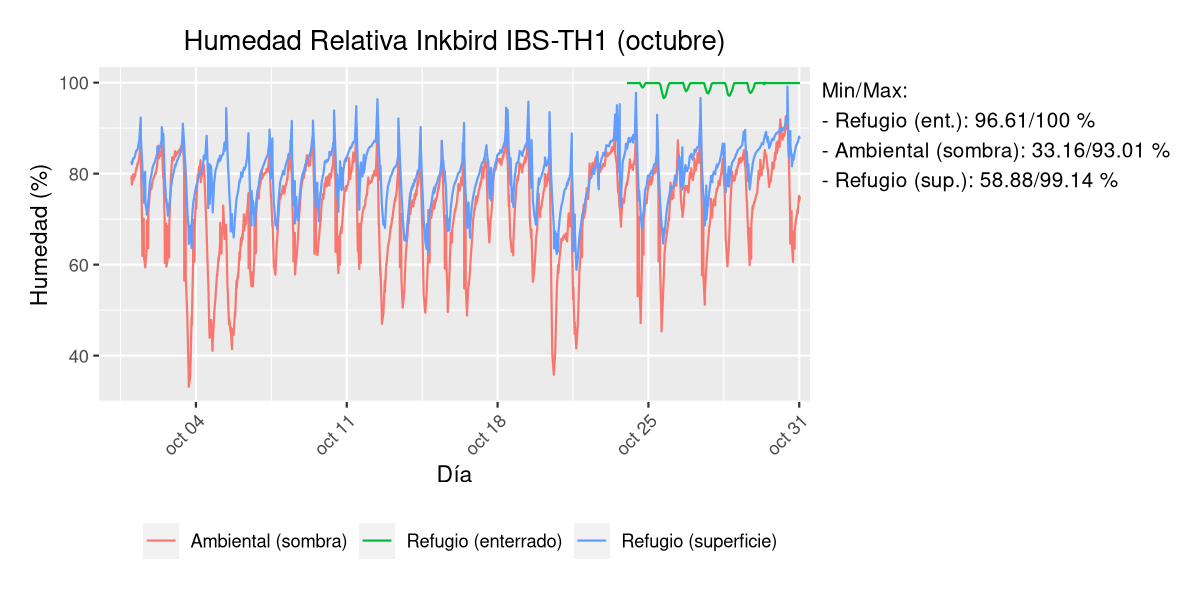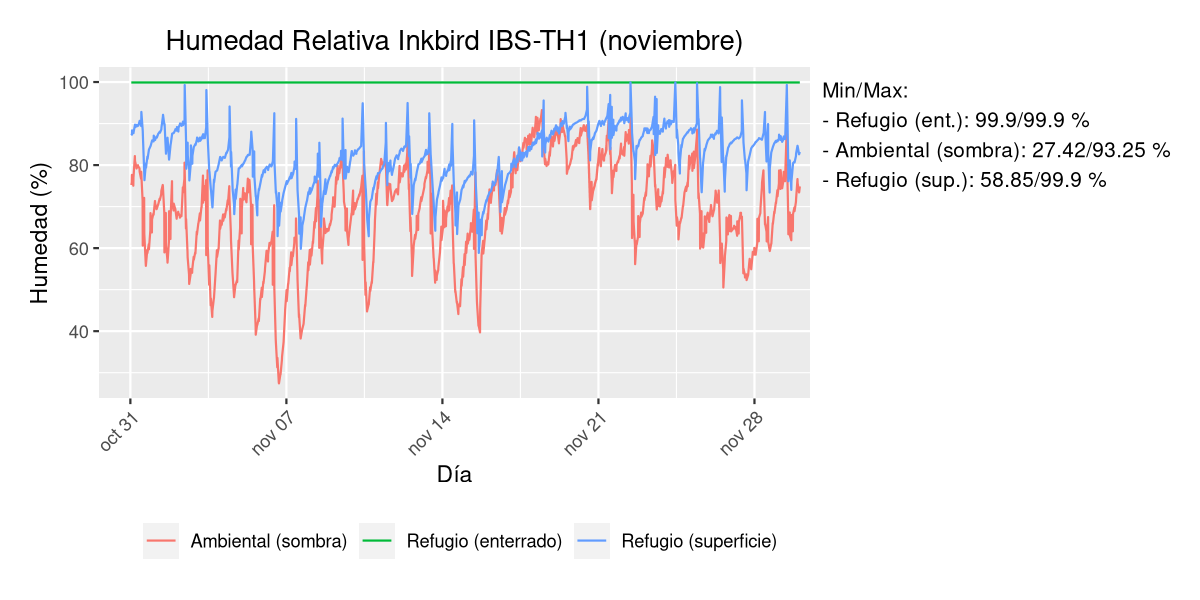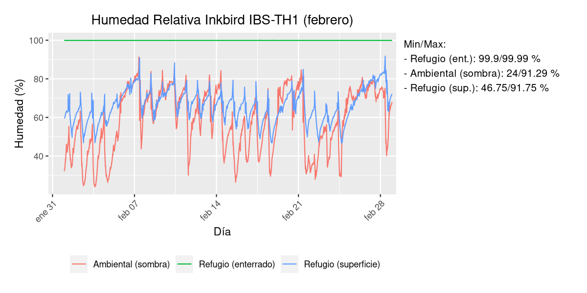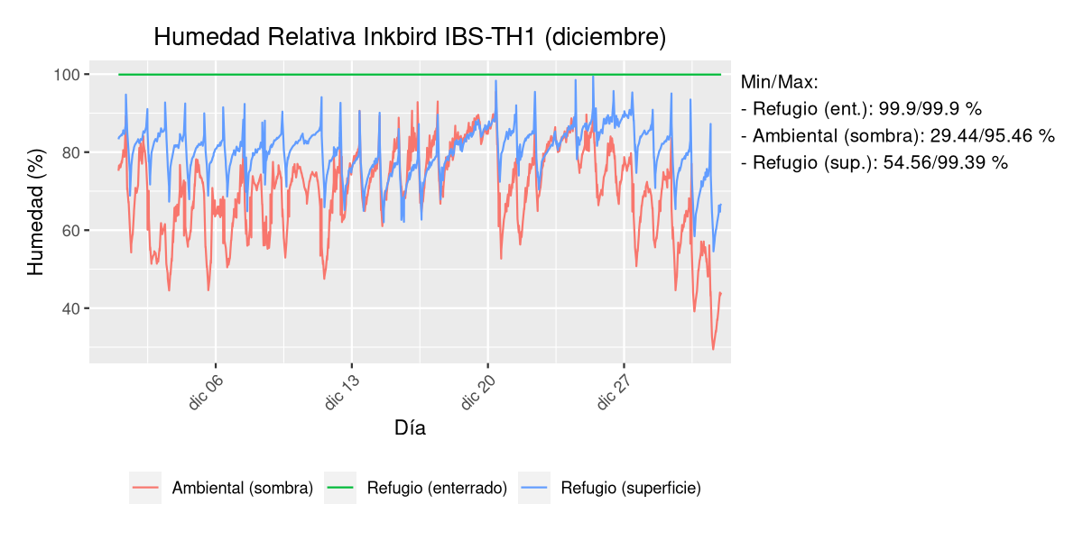 - Temperatura y humedad en refugio subterráneo a 50 cm de profundidad.
