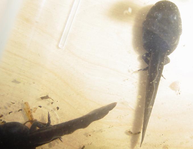 Hola dendrobates3,te voy a poner unas fotos para ke veas el cambio en unos dias nada mas,estan emepzando a sacar el color y ya parecen mas ranas,bueno una sobre todo,ahi van un par de fotosAver ke te parecen,yo creo ke en unos dias esta fuera del agua la ke esta mas desarroyada pk al ritmo de metamorfosis ke lleva...xD en la segunda foto aparece el ranacuajo del ojo,es mas claro ke los demas,mas esmirriao pero bueno yo creo ke tirara palante.Saludos y aver ke te parecen.Yo kiero ver esos vergaras xDD
