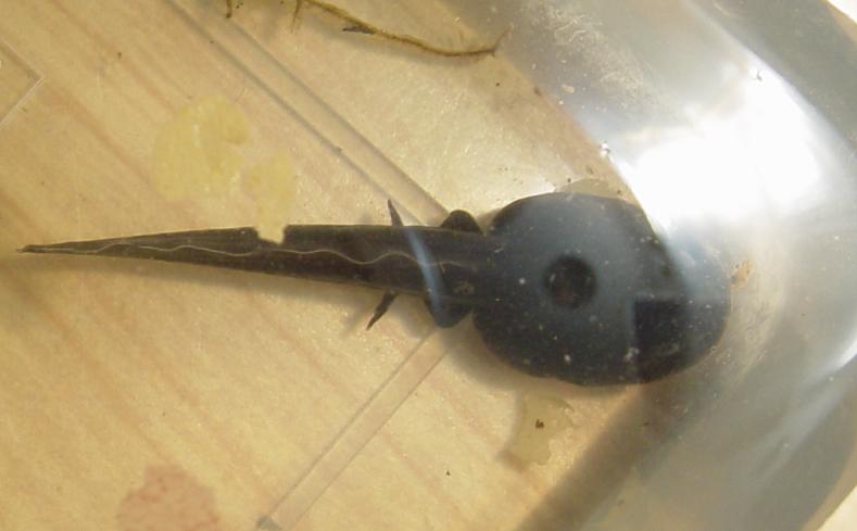Bueno el renacuajo de la foto casi no tiene cola tendra un cms de cola y delgadita,yo he visto fotos ke salian del agua incluso con mas cola,nose ke me decis?el renacuajo esta muy bien se le ve fuerte lo sake del agua lo puse en el musgo pero rapidamente de un salto se metio otra vez en la charca,yo creo ke un dia mas y saldra no?Saludos