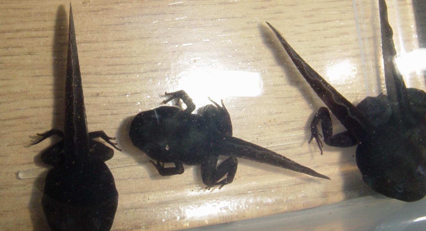 Lo que si esta claro es que la metamorfosis es mas rapida que los que son de origen europeo,y cuando ya sean ranas , hay mucha diferencia en cuanto a tamaño, y sobre todo en proporciones de las patas delanteras.