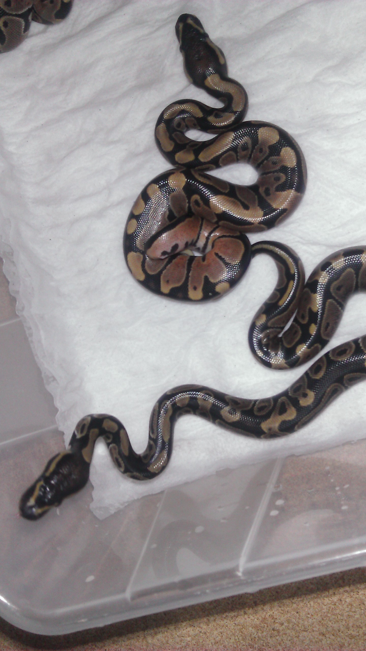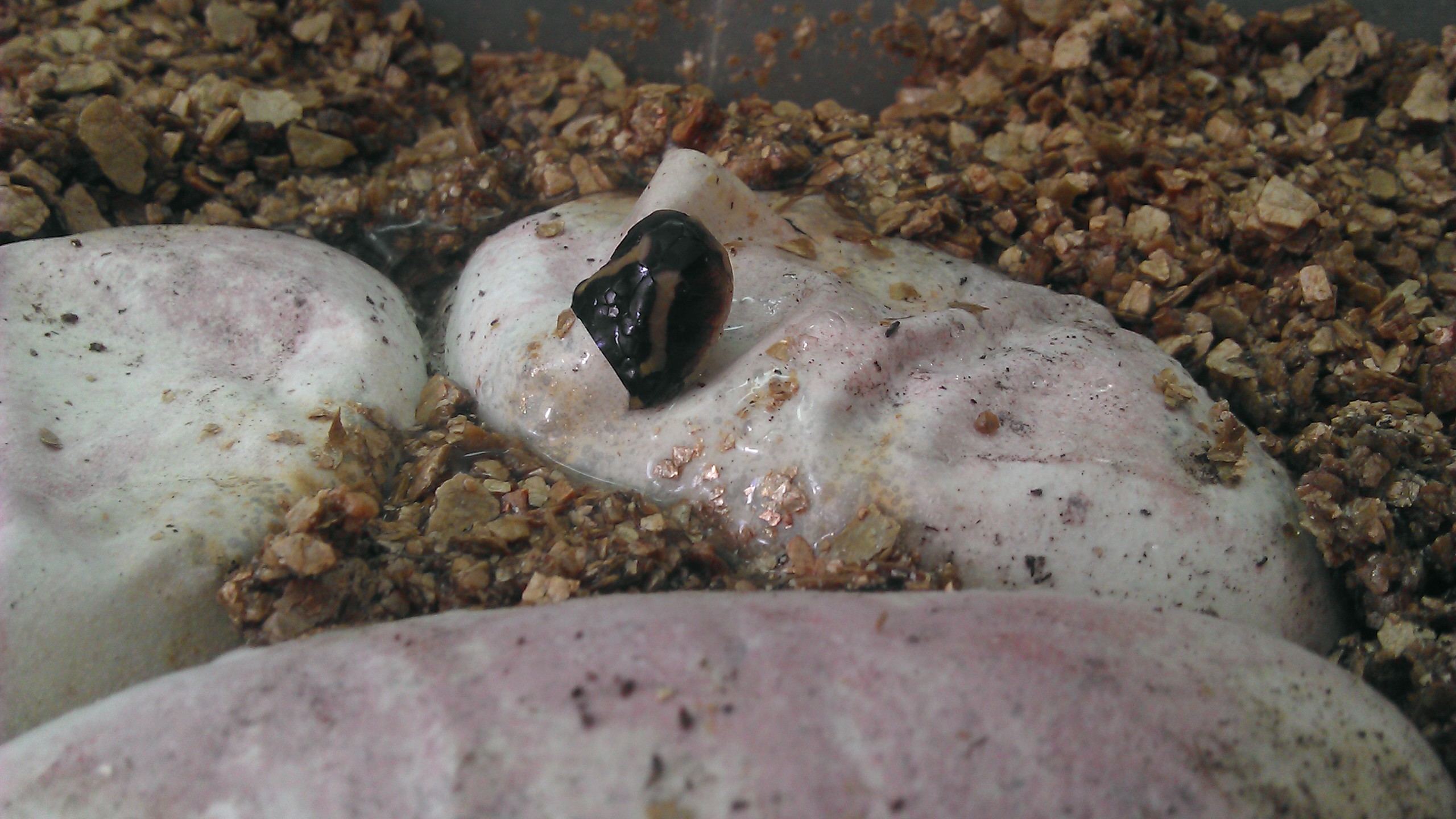 Me acaba de romper un huevo una serpiente, os pongo fotos. Otro tambien se ha desinchado. Uno todavia esta sin desinchar. Ke hago. Por favor ayuda.... Los saco de la vermiculita y los pongo en tu tupper con papel humedo:confused:?