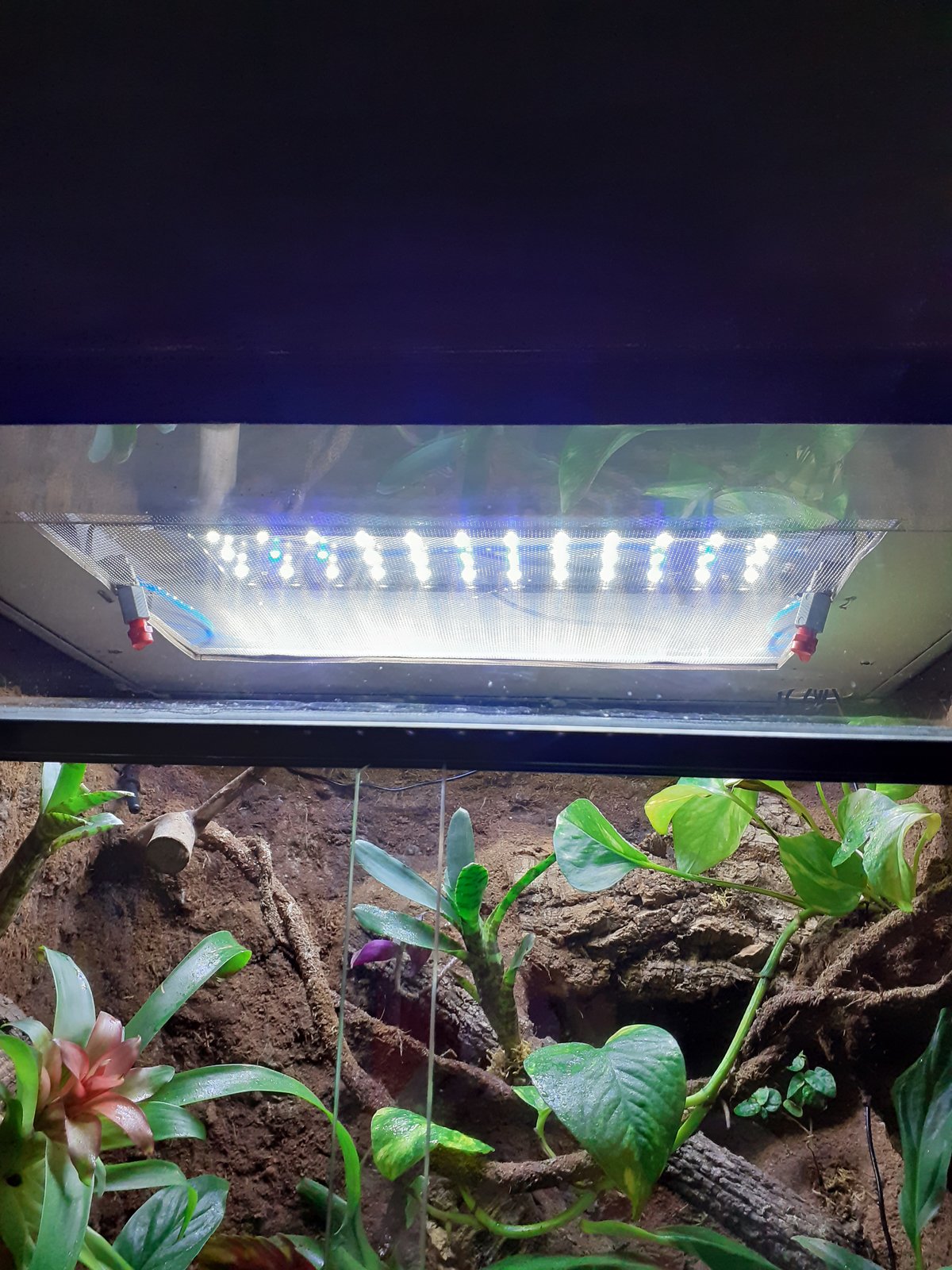De termohigrometro suelo utilizar uno doble que me mide 2 sitios de temperatura y 1 de las sondas la humedad , marca lucky reptile, aparte en la habitación tengo uno analógicode zoo med de " el año la polca" jajaja y me va bastante bien, el tema es que no se moje directamente, osea que no le de direntamente el riego a la sonda del higro. Espero que sea de tu ayuda. Saludos!!