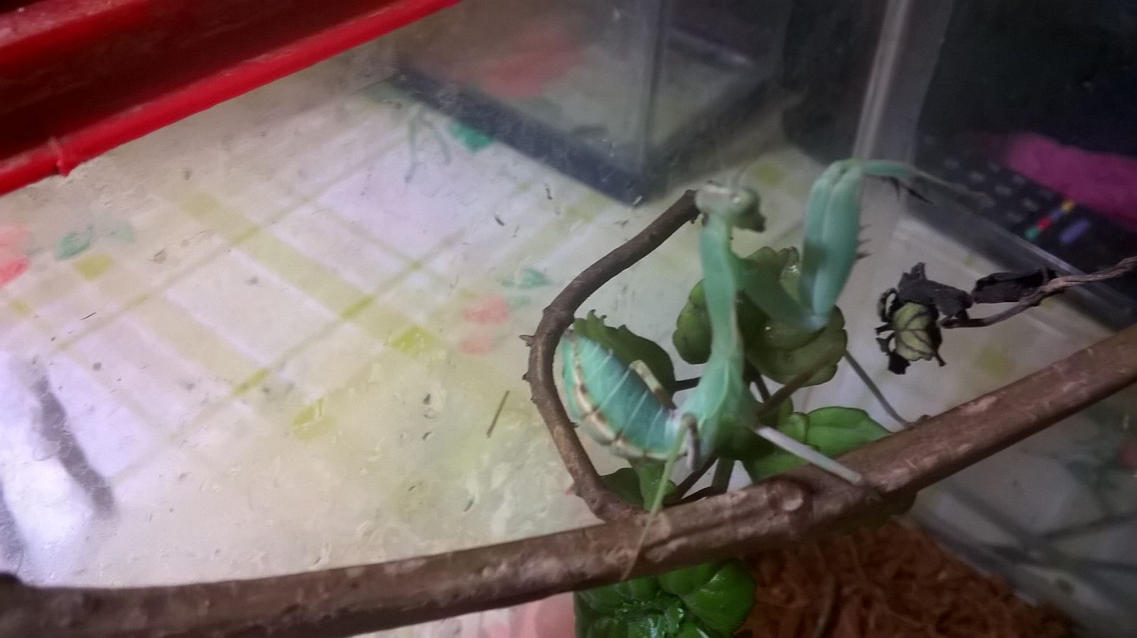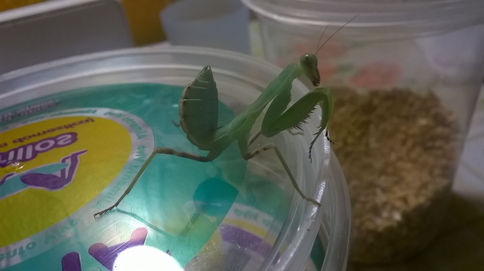 Empecemos con decirles, que para empezar obtuve una pareja de Mantis johannesburg, por motivos de inicios, perdi una de ellas al tratar de darle de comer grillos, y la otra la pase a un primo que le encanto y actualmente cuida de ella.