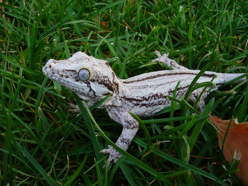 Hola a todos este es mi nuevo inkilino,segun me dijeron es 1 macho de Rhacodactylus auriculatus striped,la verdad es k desde k lo compre casi no lo veo,se pasa todo el dia escondido y no se ni si come,al k se lo compre le daba jeringuillas de potito de frutas pero yo no kiero darle la comida directamente,prefiero k se buske 1 poco la vida,d momento le estoy dando grillos vitaminados,le he puesto potito en 1 recipiente pero no veo rastros d k coma.¿Que opinais al respecto? ¿Deberia darle d comer yo? o espero a k se acostumbre al terrario y coma x si solo.¿Alguien mantiene esta especie en concreto? Cualkier informacion me sera d gran ayuda.Muchas gracias.Saludos.