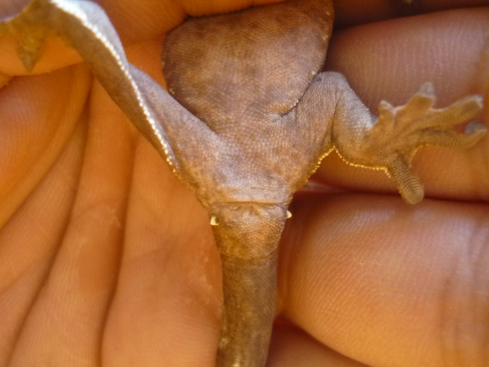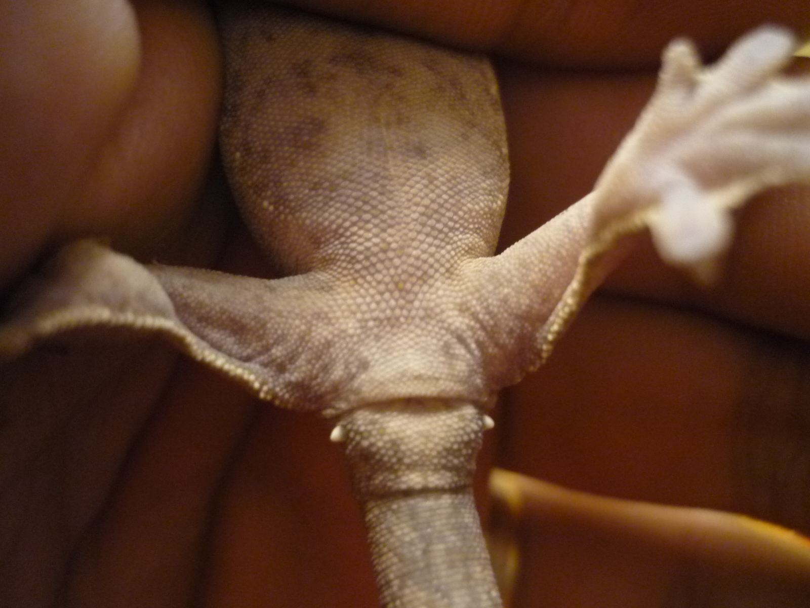 Lo de los poros no es asi, las hembras no tienen poros femorales, los machos si. Quizas confundas los "circulitos" de su piel con los poros en si. Los poros son una especie de punto oscuro dentro del circulito, formando normalmente una linea curva en forma de parentesis horizontal " ( "