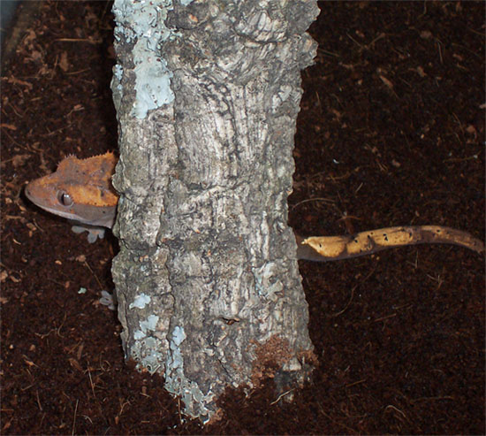 Rhacodactylus Ciliatus: Mi rhaco escondiéndose de las miradas...