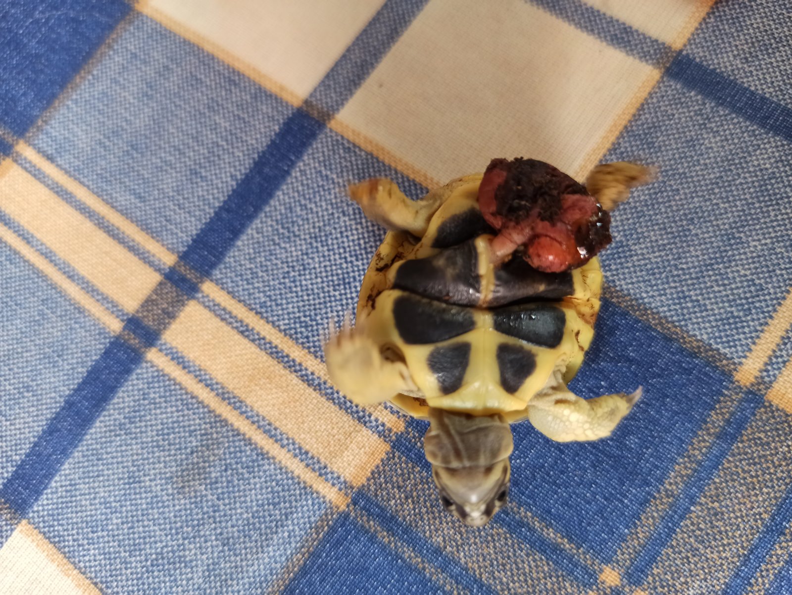 Ayer nació mi tortuga de tierra y se le rompió el saco vitelino, y se le llenó de tierra.