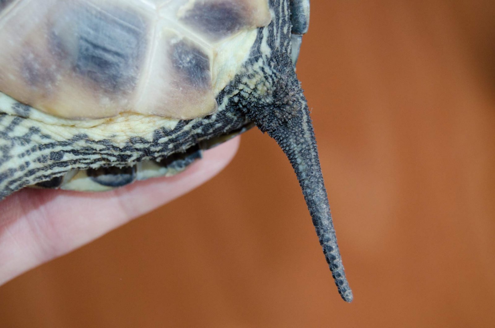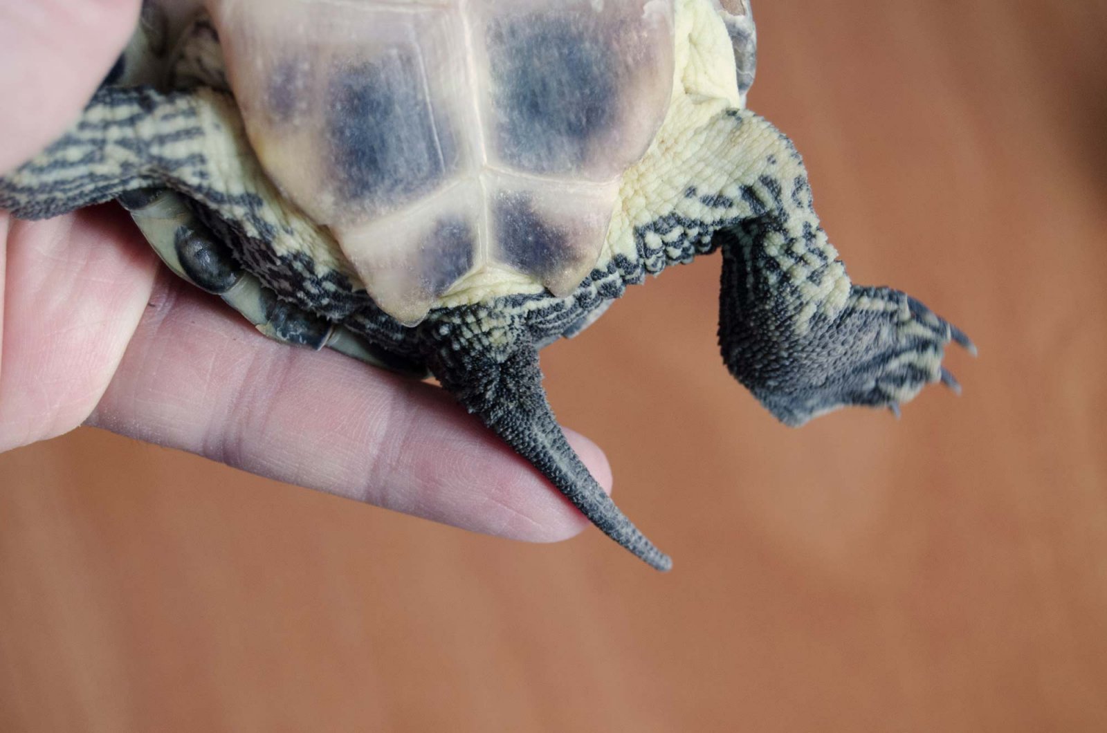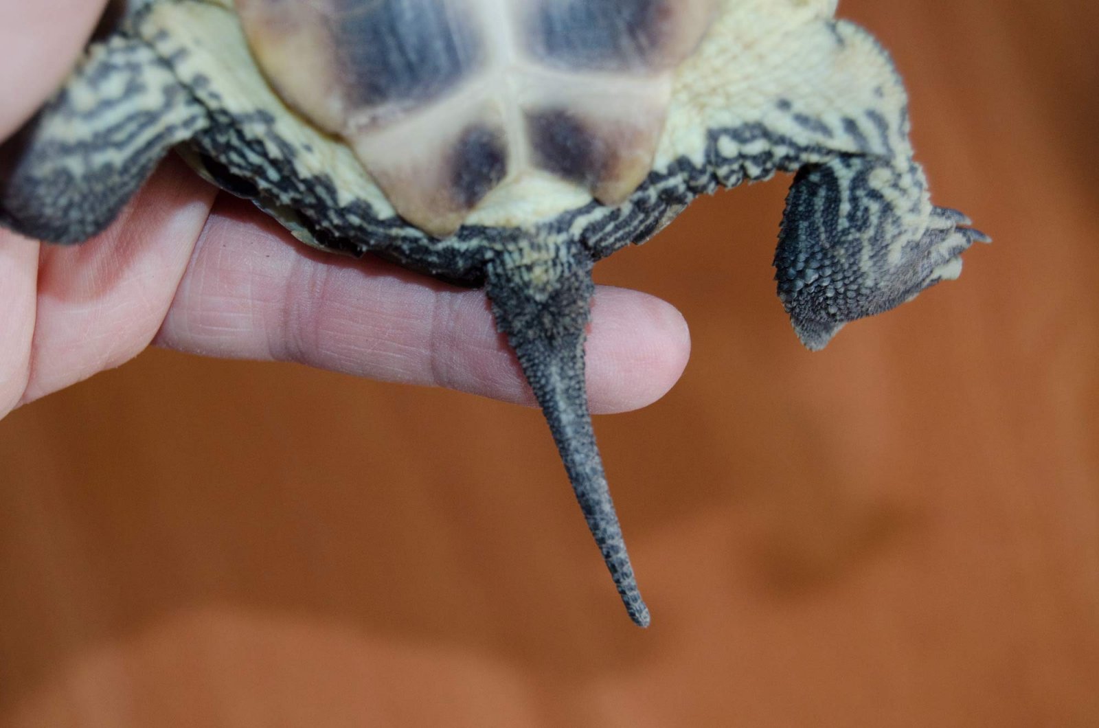 Olaf tengo claro que es macho porque en su especie es fácil de reconocer, aparte de tener la cola gorda y grande, con la cloaca muy alejada del caparazón, tiene unas uñas delanteras… muy largas.