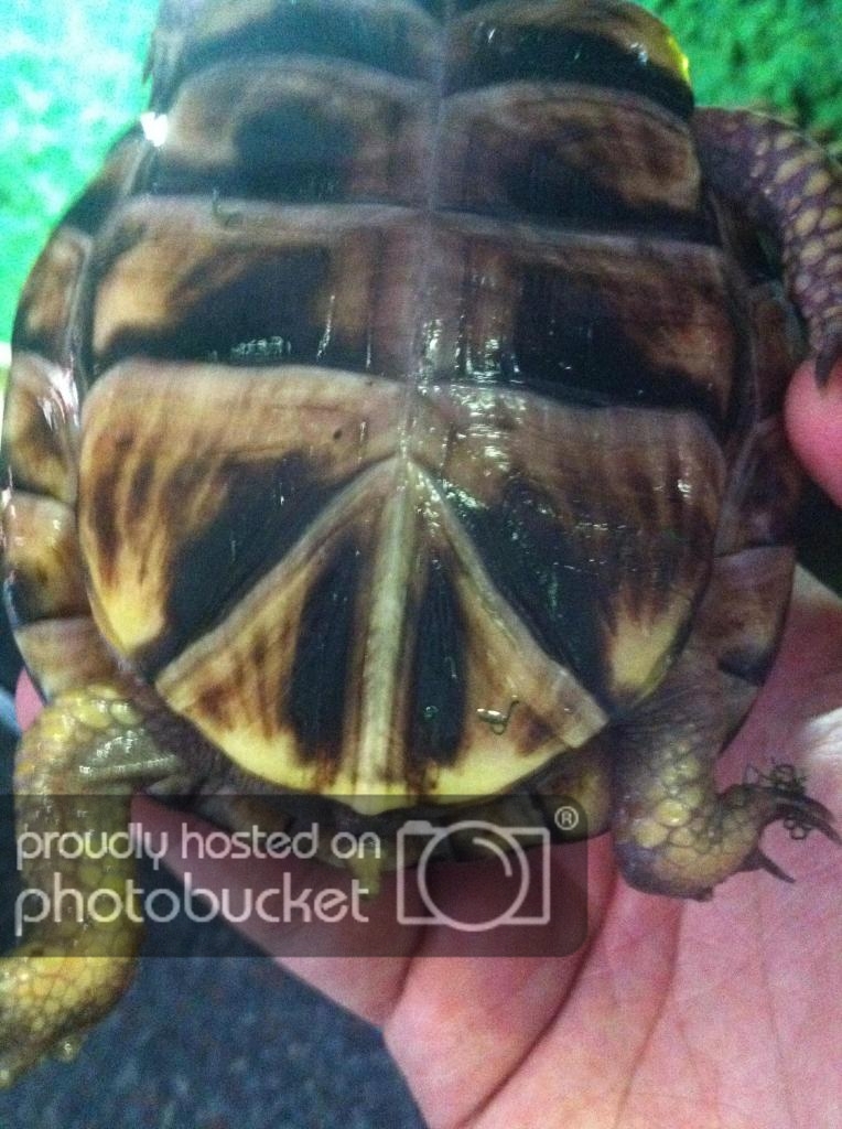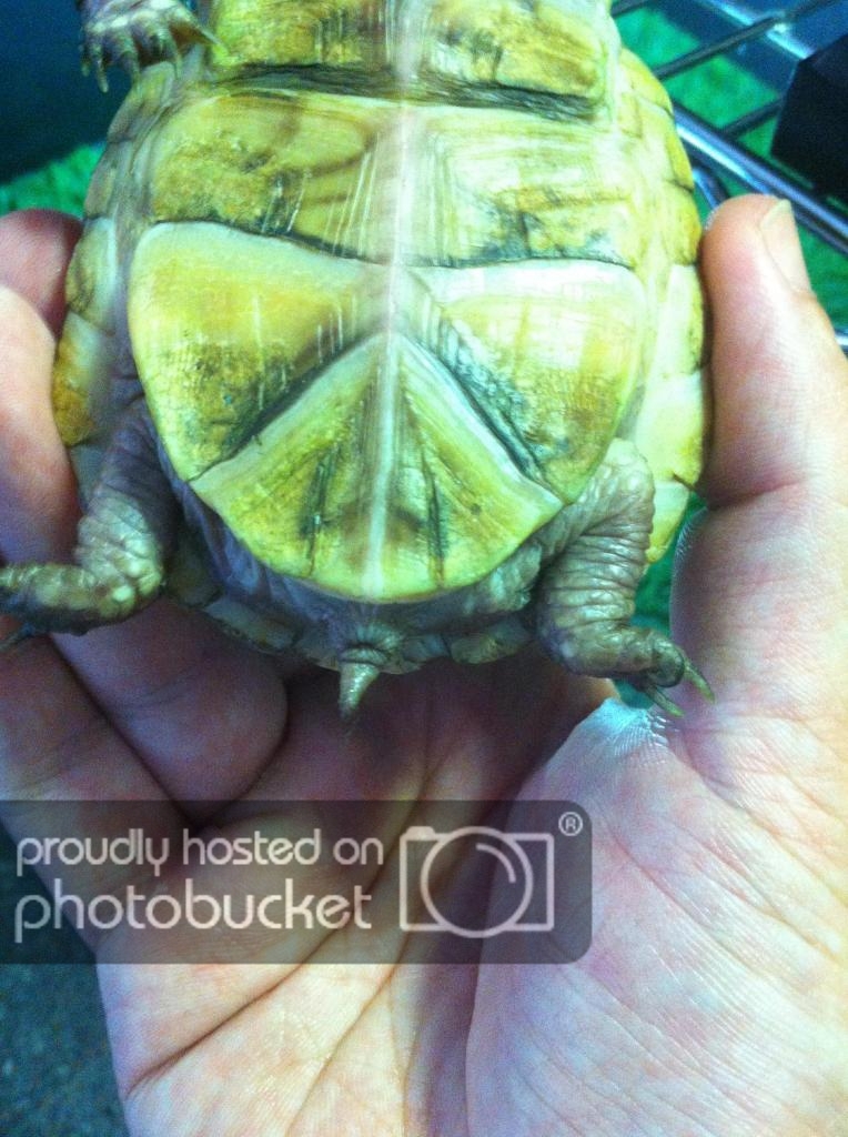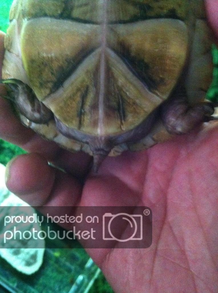 La longitud de la cola puede ser casi la misma, la base es más ancha en los machos. Lo cual no quita que hayan machos con colas bastante respetables en comparación con las de las hembras. Pero esto es mucho más común en las otras subespecies de Terrapene carolina. Los machos, y sin ser esto cierto del todo, suelen ser algo más alargados y en ocasiones tienen un pequeño faldón. Los animales jóvenes que muestran estas características pintan a macho.