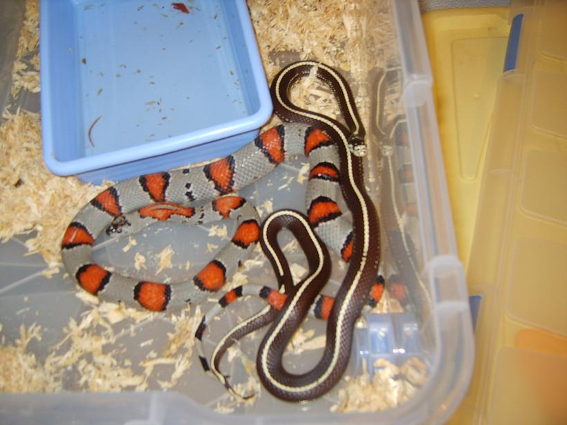 Pero esta misma tarde estaba atendiendo a mis serpientes y he probado a juntar a la alterna con un macho de californiae lineal que tambi,en tengo desparejado, y SORPRESA!! He seguido a lo mio al ver que mucho caso no se hacian, y cuando me he dado la vuelta al ratin me los he encontrado enganchados copulando! Una alegria que me ha entradooooo jejeje